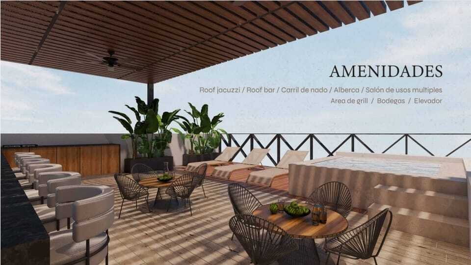 El desarrollo de 7 niveles y 24 departamentos cuenta con 3 tipologías y 5 amenidades como roof jacuzzi, roof bar, canal de nado, alberca y salón de usos múltiples, además que cuenta con elevador, estacionamientos techados, control de acceso, caseta de vigilancia y seguridad 24/7.