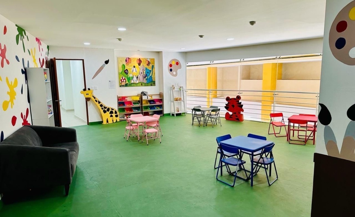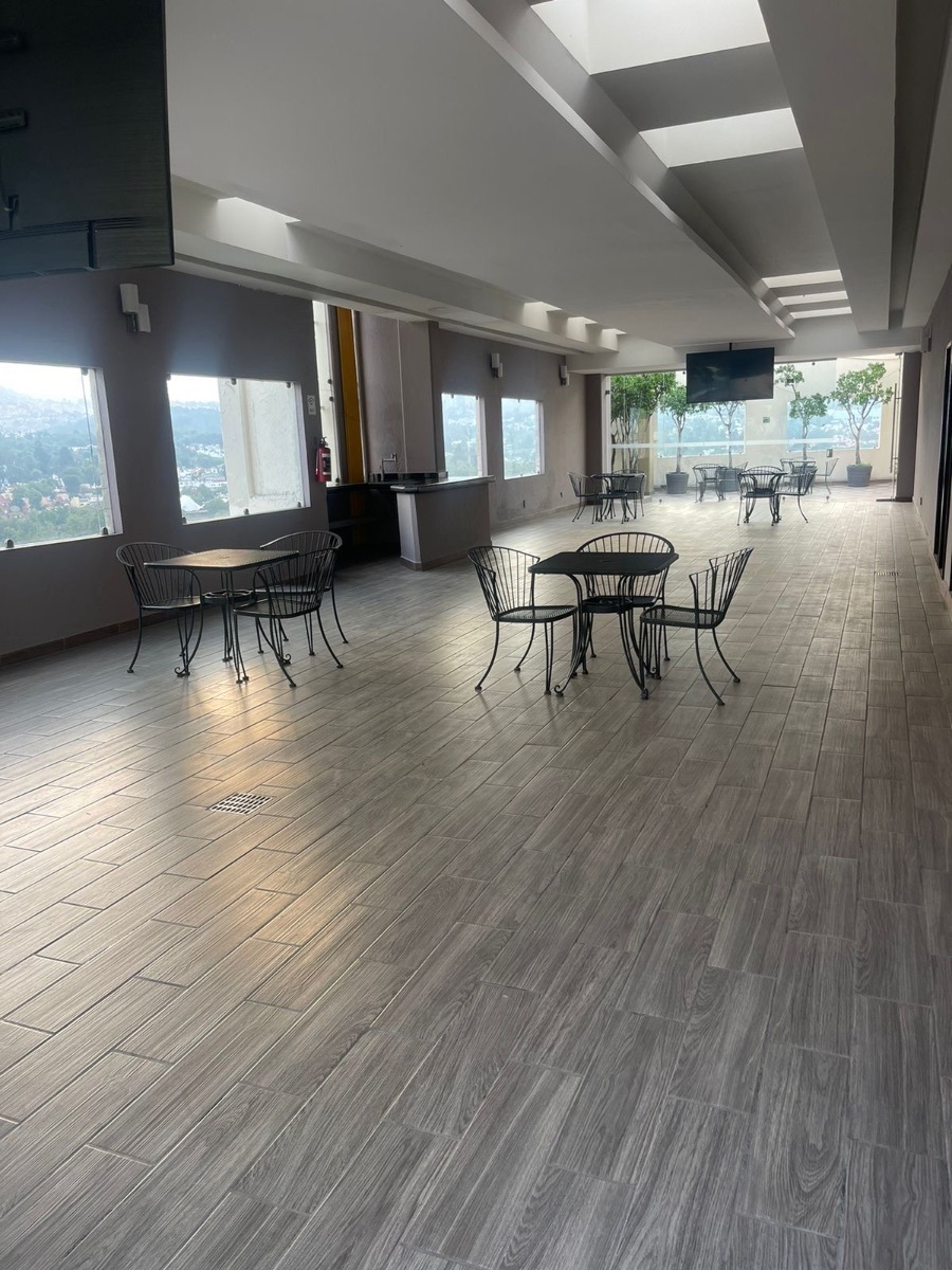 El edificio tiene excelente amenidades, ludoteca, area de juegos, alberca, gimnasio, salón de eventos para 200 personas y roof Garden común con bonita vista. Vigilancia 24 horas.