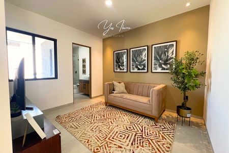 En Planta cuenta con espacio hasta para 3 autos, acceso con chapa electrónica, un estudio o recamara en PB, medio baño, estancia de sala & comedor, acogedor jardín, hermosa cocina integral con cubierta de cuarzo, amplia despensa.