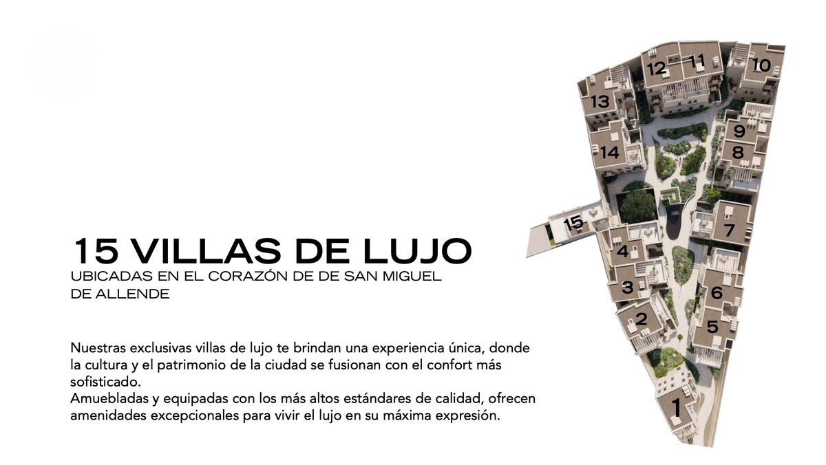 Seja proprietário de uma ou mais frações de uma das 15 vilas de luxo para férias no coração do Centro Histórico, a três quarteirões da Paróquia de San Miguel Arcángel.