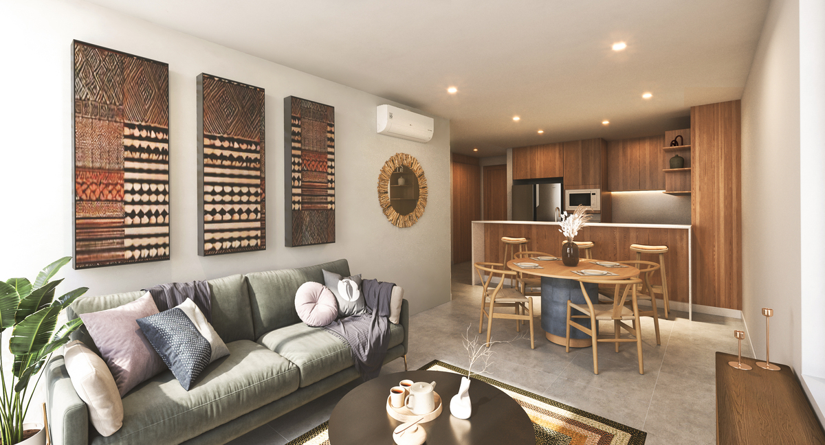 *Terrazas variables por arquitectura. Se entrega con cocina integral vestida y clósets vestidos.