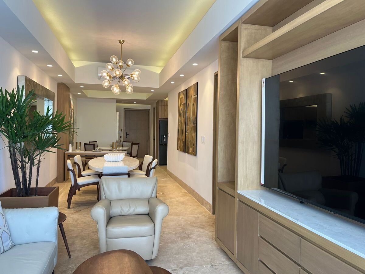 Este impresionante apartamento cuenta con dos amplias recámaras, cada una con su propio clóset vestidor y baño privado.