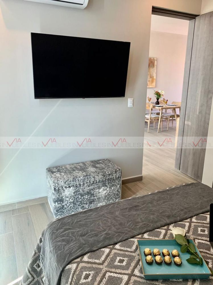 Id Gvia: 118701Con una magnifica ubicación en el sexto piso; es un departamento totalmente equipado y con una bella decoración, cuenta con 2 recamaras; una con cama matrimonial y la otra con cama individual, tienen cada una su closet, 3 baños completos, con balcón de hermosas vistas.