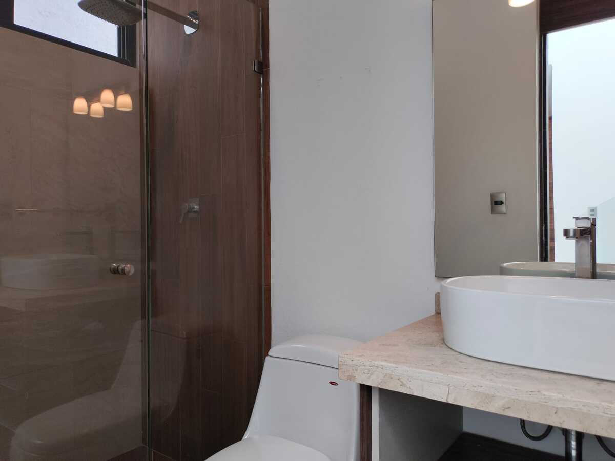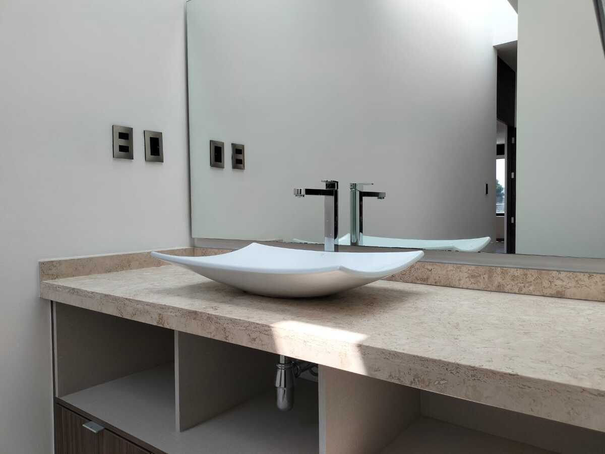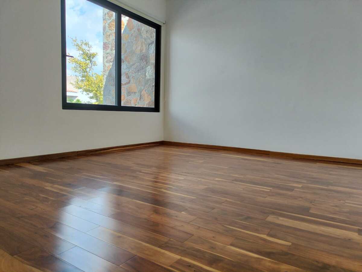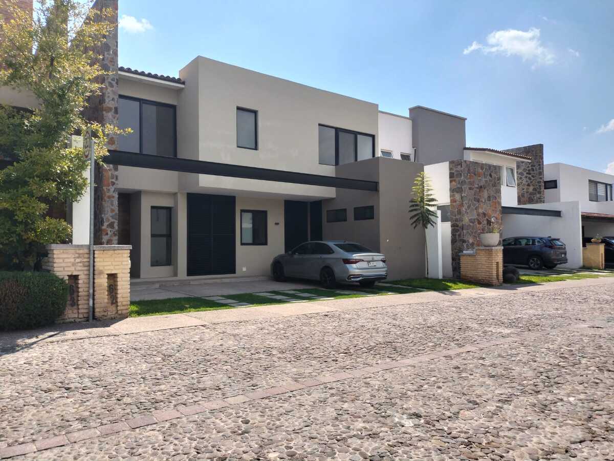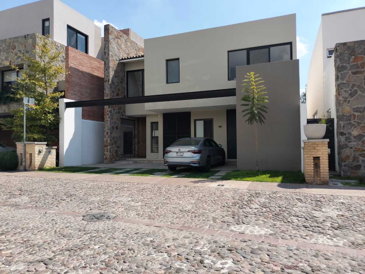 A casa conta com três quartos com closet e banheiro independente, um escritório no andar térreo, sala de TV no andar superior, quarto de serviço, sala, sala de jantar, lavabo no andar térreo, garagem para três carros e cozinha equipada, acabamentos de primeira, claraboia com pérgolas na escada e perfeitamente bem iluminada.Excelente oportunidad, para vivir en uno de los condominios mas exclusivos en Jurica, Arco de Piedra condominio de 74 casas con gimnasio, area de juegos infantiles, acceso controlado y áreas verdes.