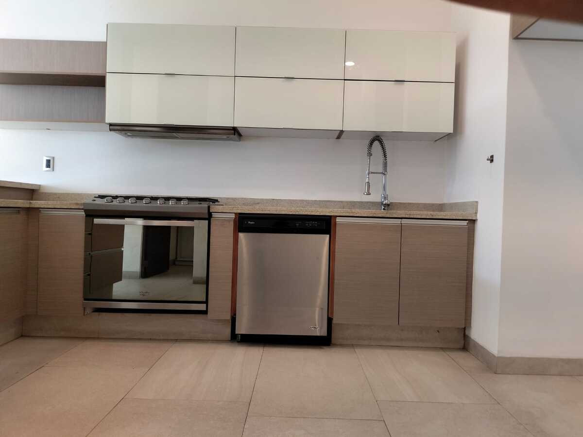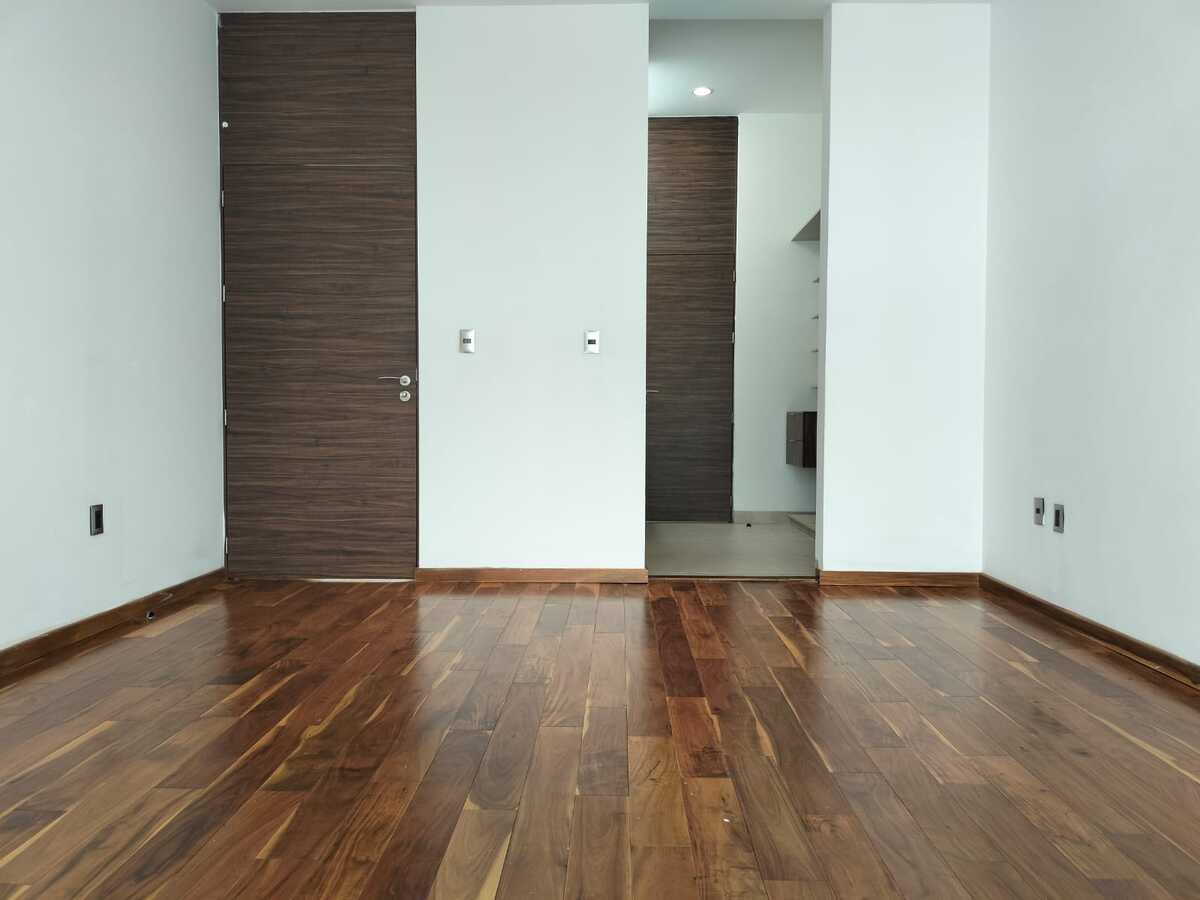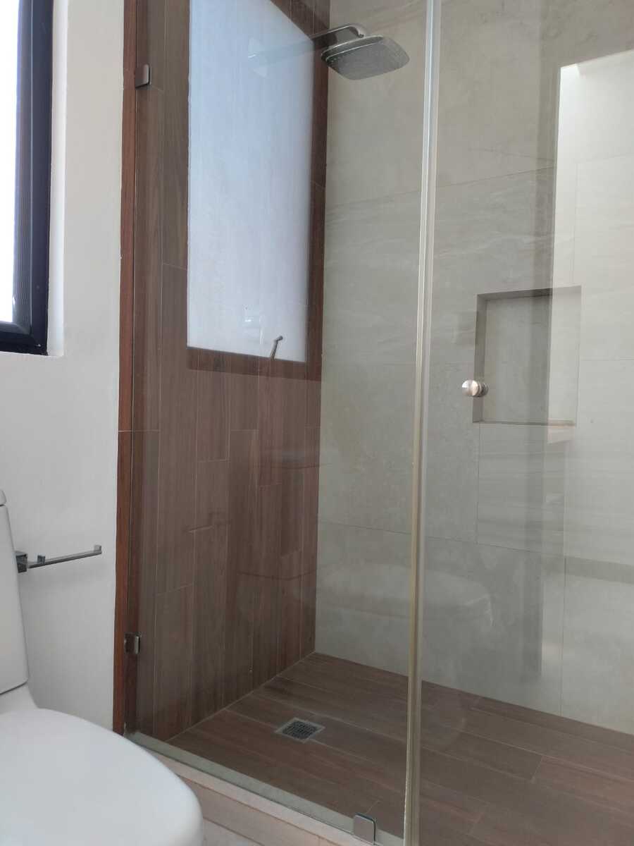 La casa cuenta con tres habitaciones con vestidor y baño independiente, un estudio en planta baja, sala de TV en planta alta, cuarto de servicio, sala, comedor, medio baño en planta baja, cochera para tres autos y cocina equipada, acabados de primera, tragaluz con pérgolas en escalera y perfectamente bien iluminada.