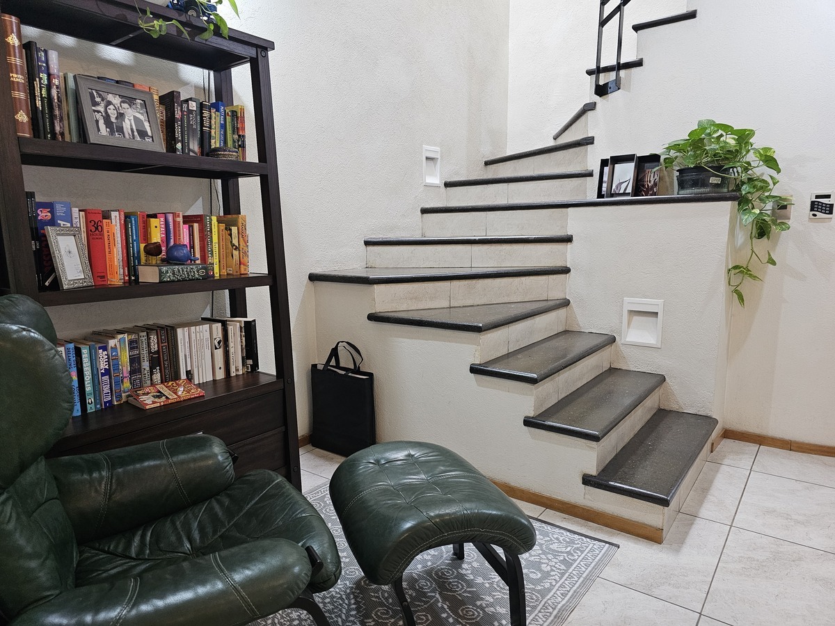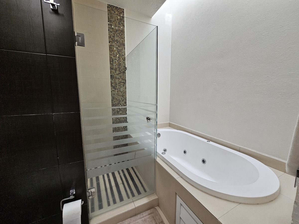 En la planta alta, sala de tv, y tres recámaras, la principal con baño, vestidor y tina de hidormasaje, las otras recámaras comparten baño completo.