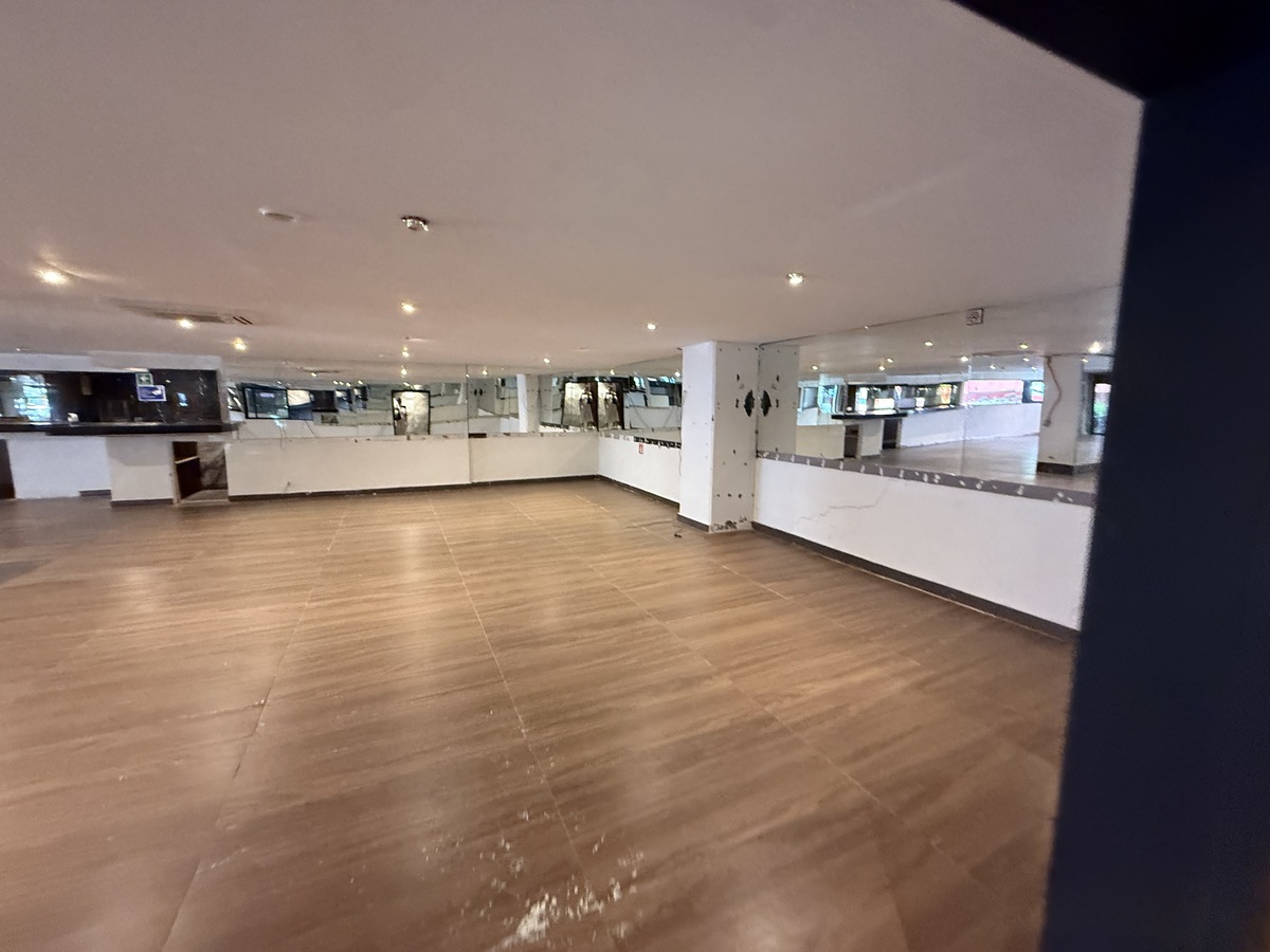 El espacio incluye baños de hombres y mujeres, bodega, área de cocina y un amplio salón de 200 m².