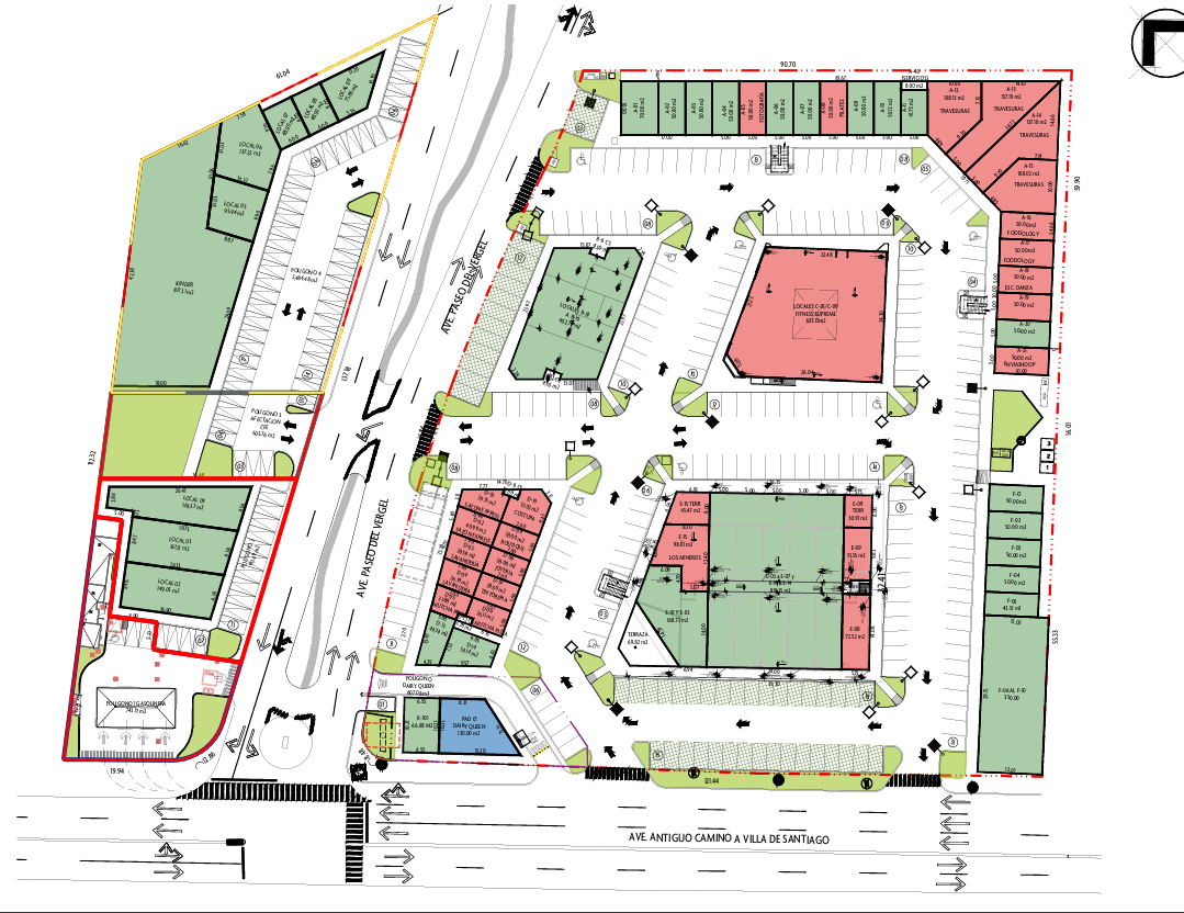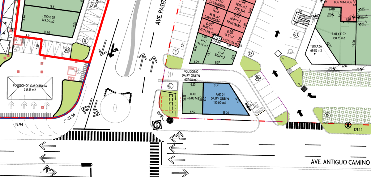 Plaza comercial de dos niveles con varios giros como tiendas de conveniencia, restaurantes, cafés, servicios, entre otros.