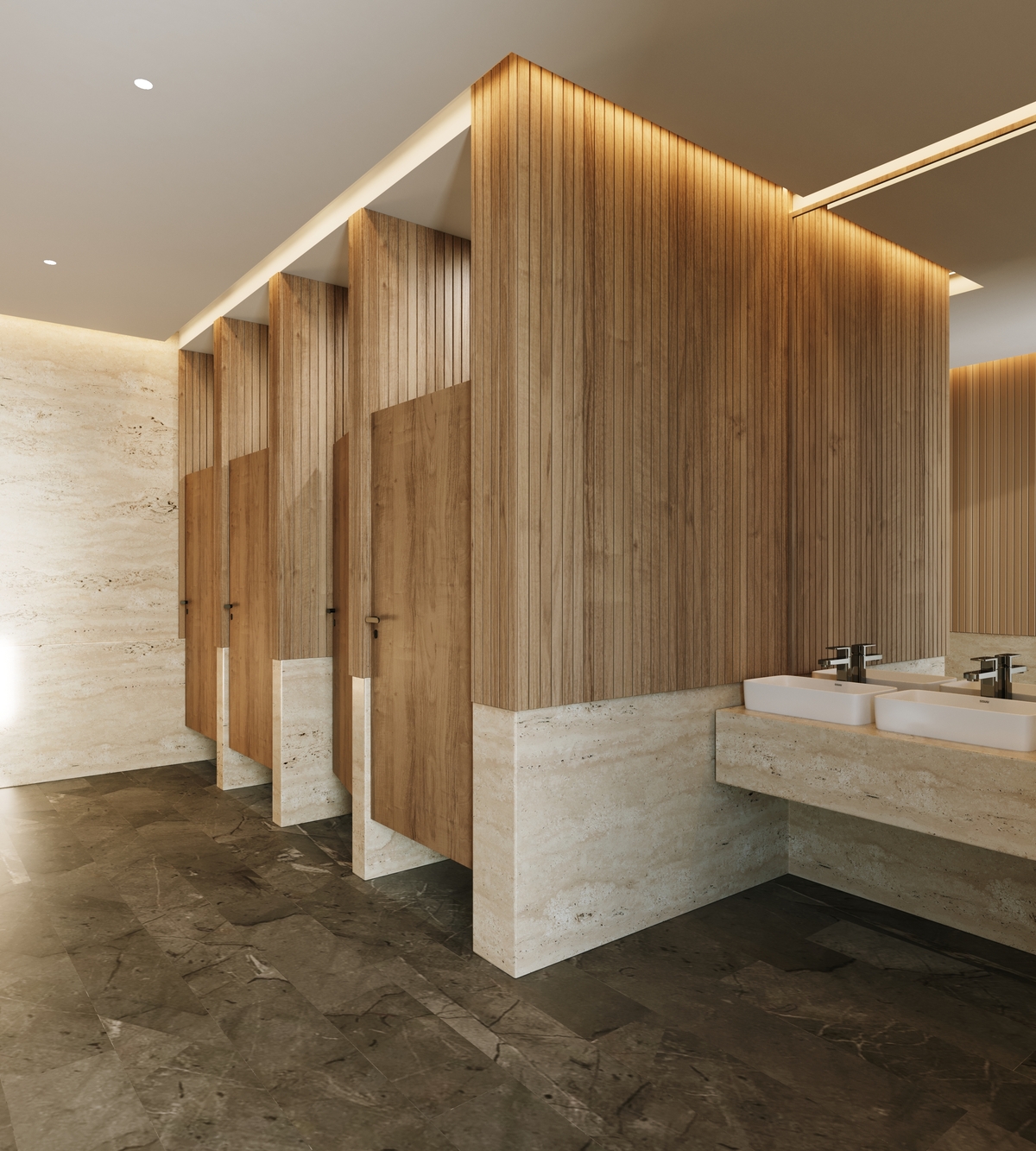 -Baños públicos: los baños se ubican en los accesos laterales del proyecto, contando con un