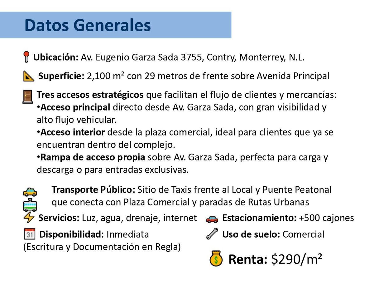Se renta local comercial de 2,000 m² en una de las avenidas más importantes y de mayor flujo vehicular y peatonal del sur de Monterrey: Avenida Garza Sada. Con una ubicación privilegiada y excelente visibilidad, este espacio representa una oportunidad ideal para negocios que buscan alta exposición y conectividad directa con miles de clientes potenciales todos los días.