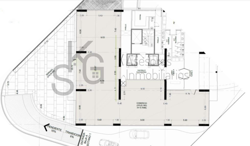 Este espaço comercial em nível de rua oferece uma área total de 592 m², distribuídos em 376 m² de área interna e 216 m² de terraço, ideal para criar um espaço atraente, funcional e com grande visibilidade.