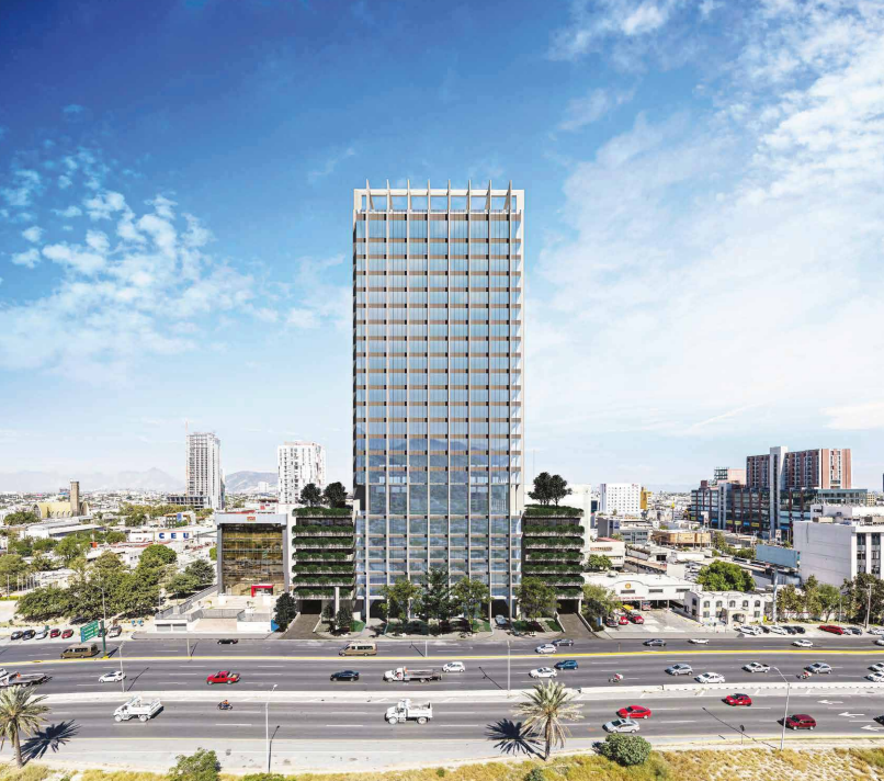 Un desarrollo de usos mixtos que se suma a la propuesta de la regeneración del Centro ofreciendo una moderna torre de oficinas corporativas y con una privilegiada ubicación en una de las principales vías rápidas de Monterrey.