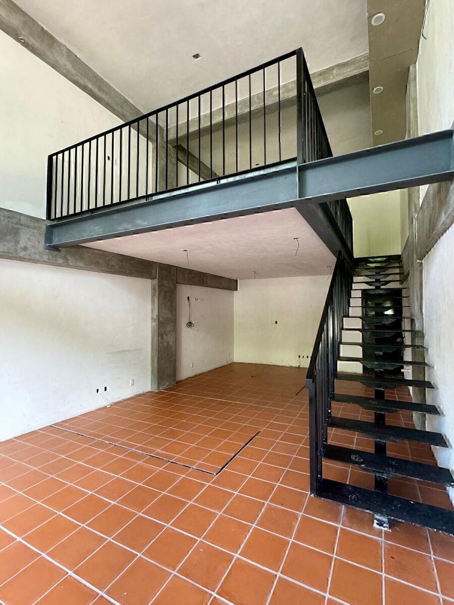 O espaço é de dois andares, 66 m2 no andar térreo e 33 m2 no andar superior.