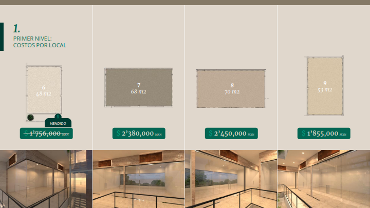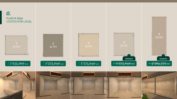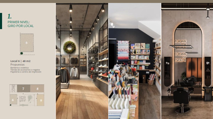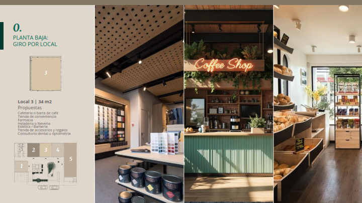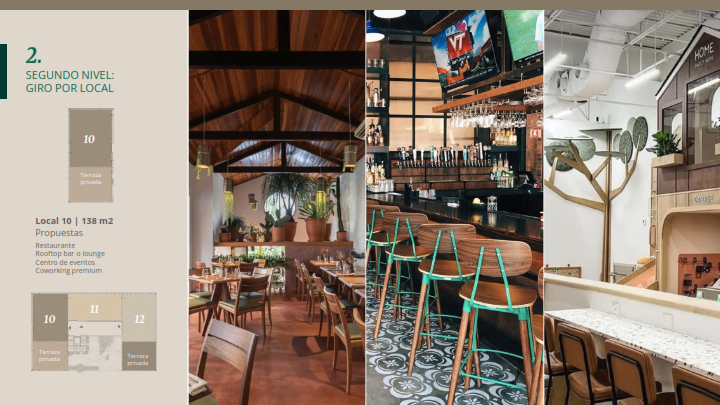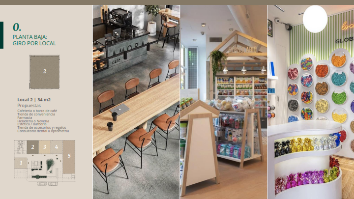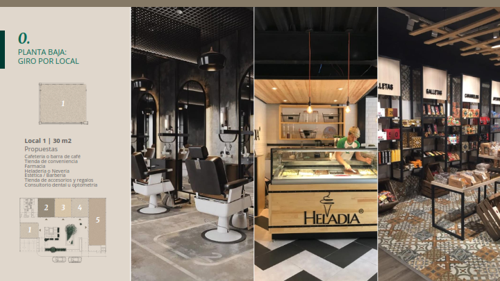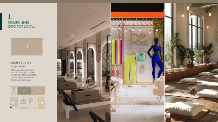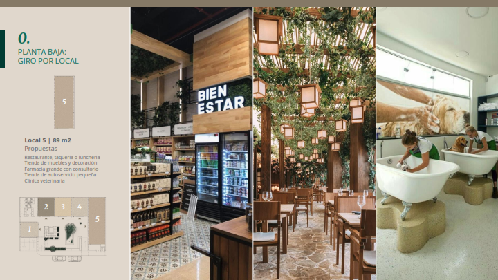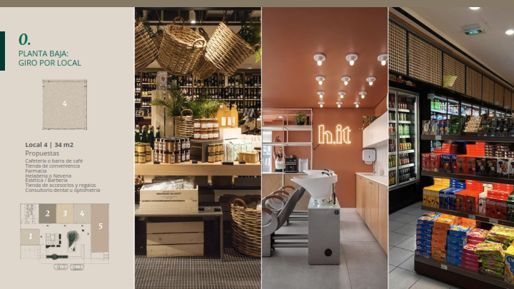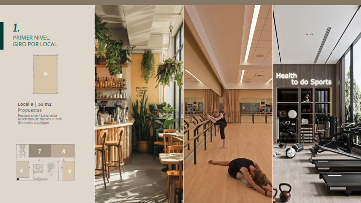 Espacios para restaurantes, cafeterías, farmacias, gimnasios, coworking y más