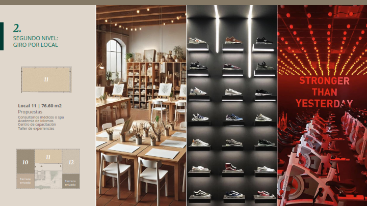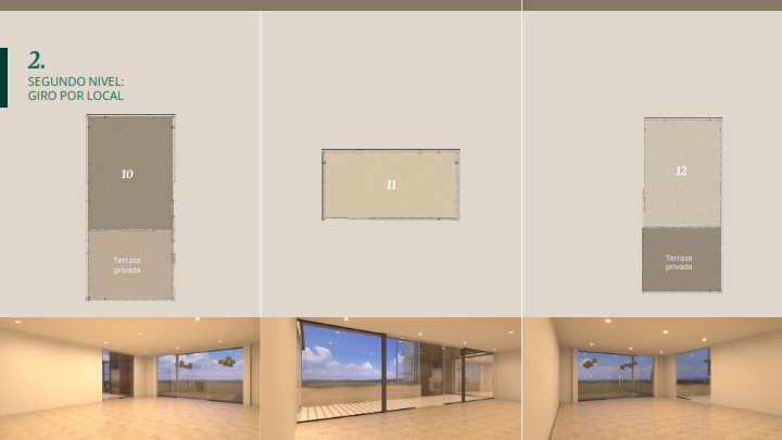 Locales desde 30 m² hasta 138 m² con terrazas privadas