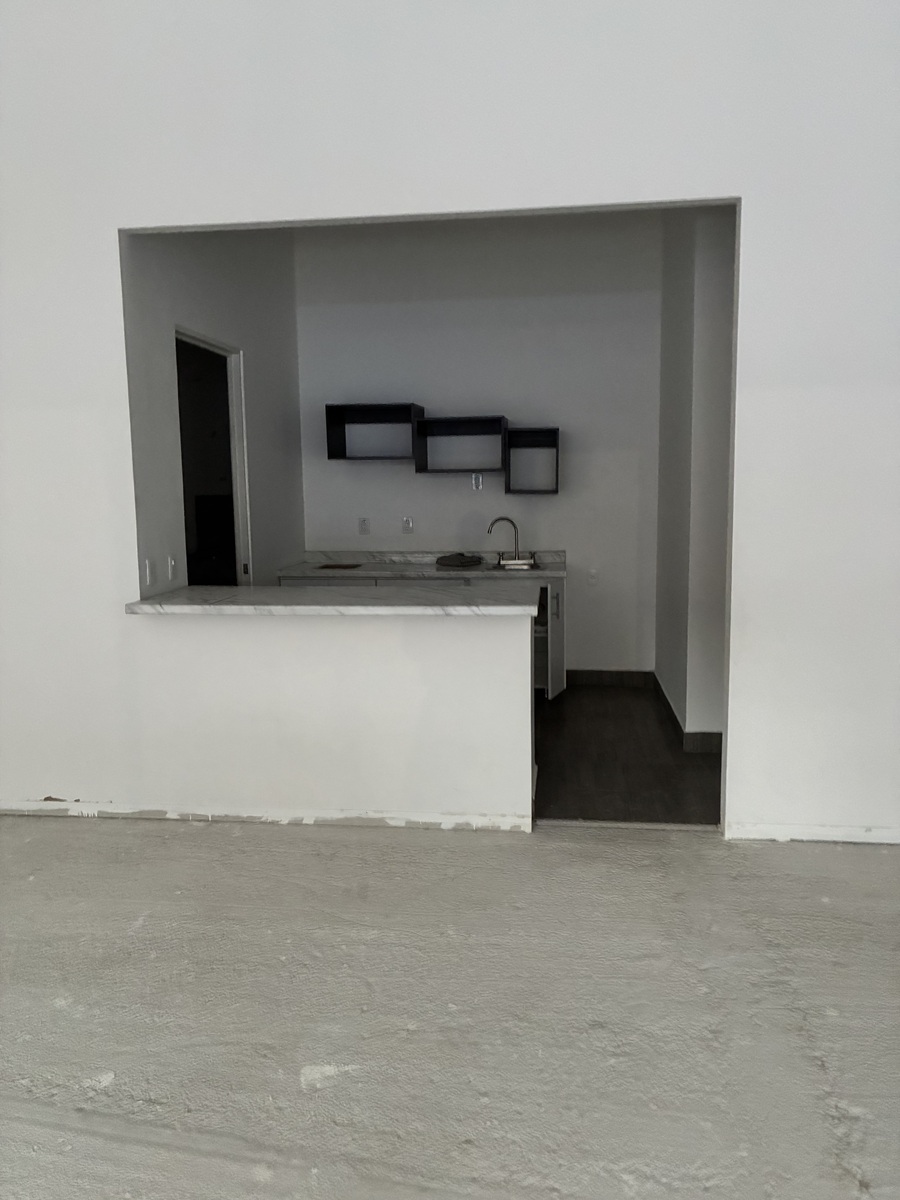 Possui piso em parte do local, bar, preparação para cozinha com pia e bar, despensa, preparação para banheiros, revestimento nas paredes.