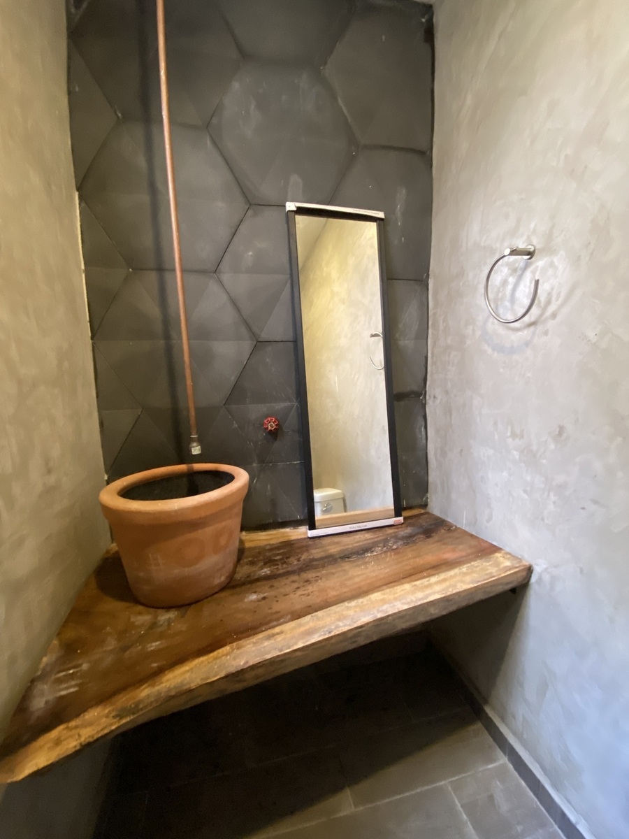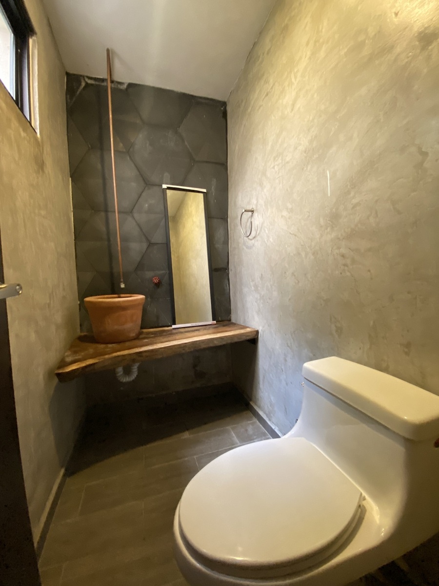 Un baño de visitas con carácter y estratégicamente situado (escondido), complementa el primer nivel.