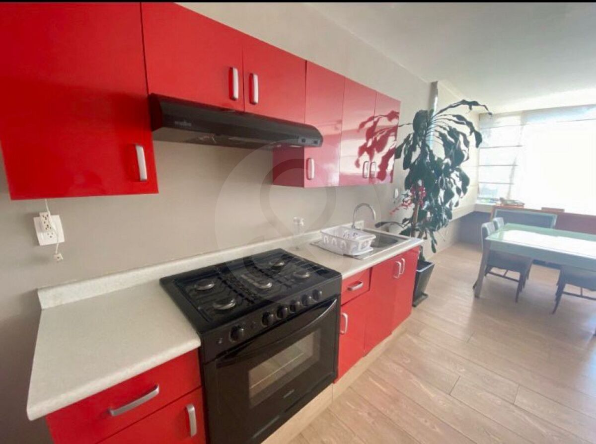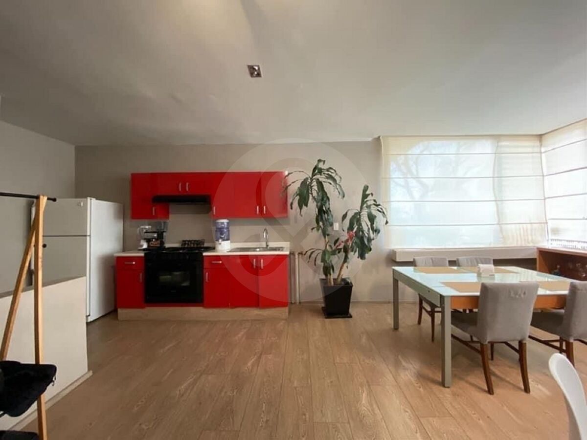 Precioso loft en renta, con 1 recámara con vestidor, 1 baño, 1 estacionamiento, estancia con cocina y comedor con mucha luz y soleado Se renta totalmente amueblado y equipado. Ideal para parejas o una sola persona. La renta incluye mantenimiento de áreas comunes, agua, luz, gas e internet. La calle tiene un policía de vigilancia. No se aceptan mascotas y no tiene elevador. Disponible el 1 de septiembre. K.F
