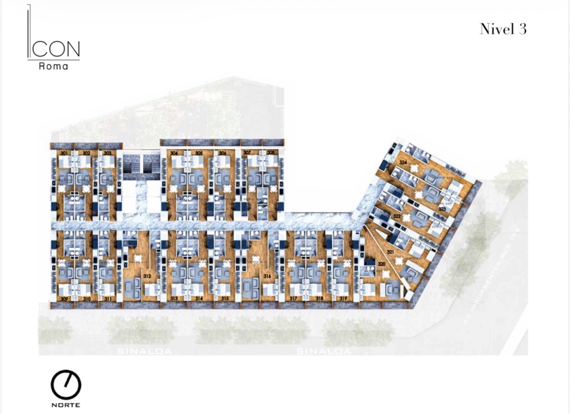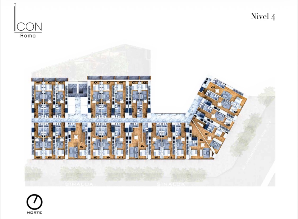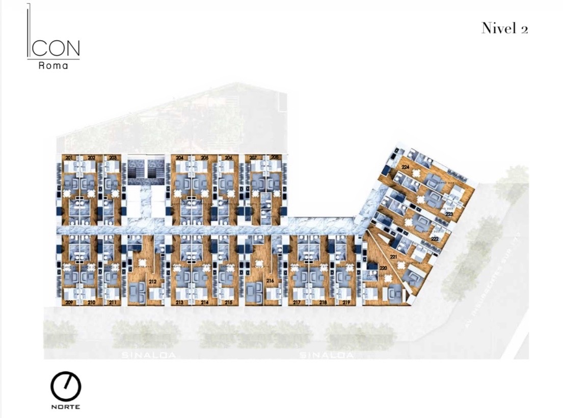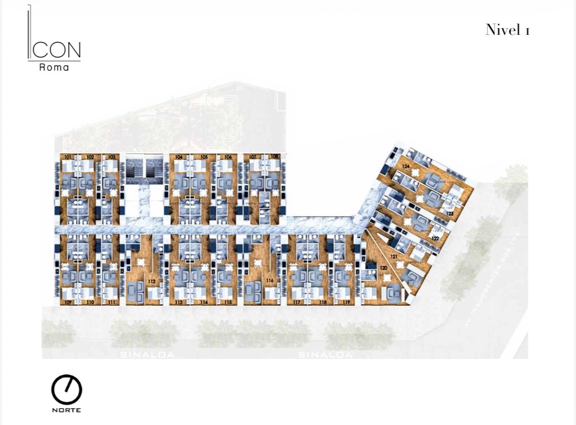 Todas as medidas mencionadas são meramente indicativas; as medidas exatas serão aquelas expressas no respectivo título de propriedade de cada imóvel.Icon Roma, Cuauhtémoc, CDMX