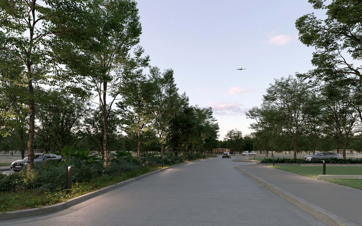 O design da comunidade privada apresenta uma grande avenida principal com a casa do clube no centro e ruas secundárias que se espalham para os lados, garantindo maior privacidade e uma orientação favorável para o clima yucateco.