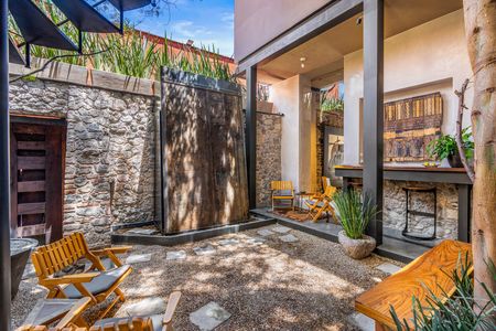 La elegancia de esta propiedad se denota con su mobiliario Romweber y la cocina totalmente equipada con artículos de la marca Viking.