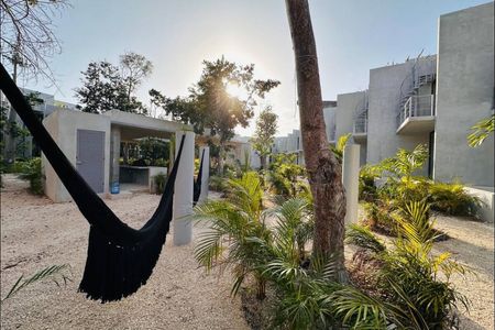 É um lugar onde a vida flui em equilíbrio, perfeito para quem busca um refúgio moderno que se conecte com a essência de Tulum.Rodeado de exuberante vegetación, este departamento ofrece una experiencia armoniosa con la naturaleza, integrando materiales naturales y espacios cuidadosamente diseñados para brindar tranquilidad y comodidad. Totalmente pensado para capturar la esencia de la vida caribeña, con áreas abiertas, acabados orgánicos, y una conexión fluida entre interiores y exteriores.