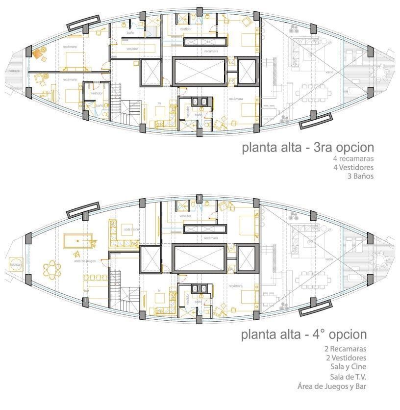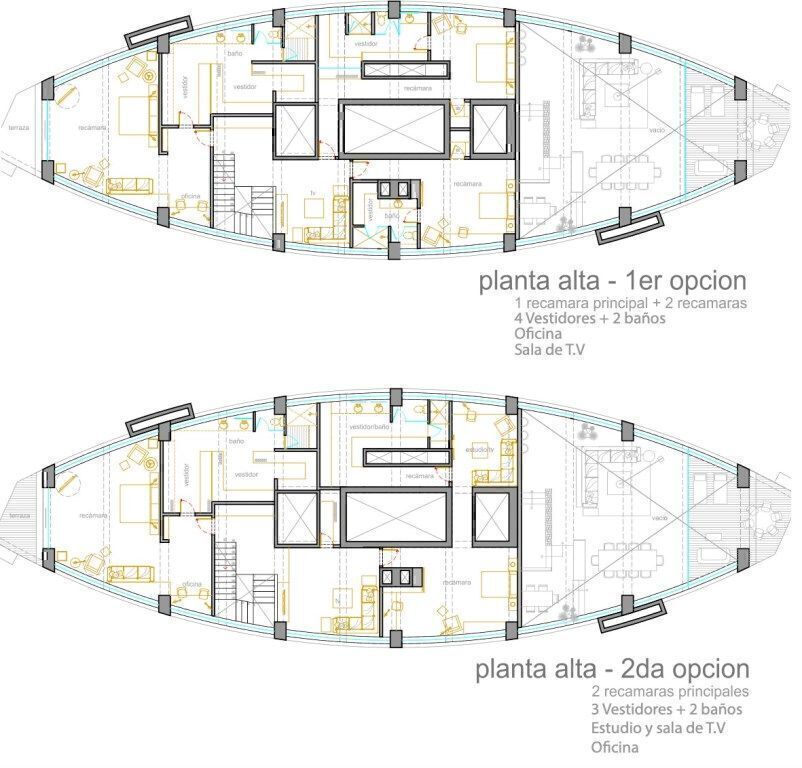 A concreto pulido, baños terminados y muros divisorios. Se entrega con 4 alternativas de distribución. En coordinación con el comprador se eligen los materiales y terminados. También se puede entregar como esta y descontar del precio el costo equivalente a la evaluación de la planta alta.