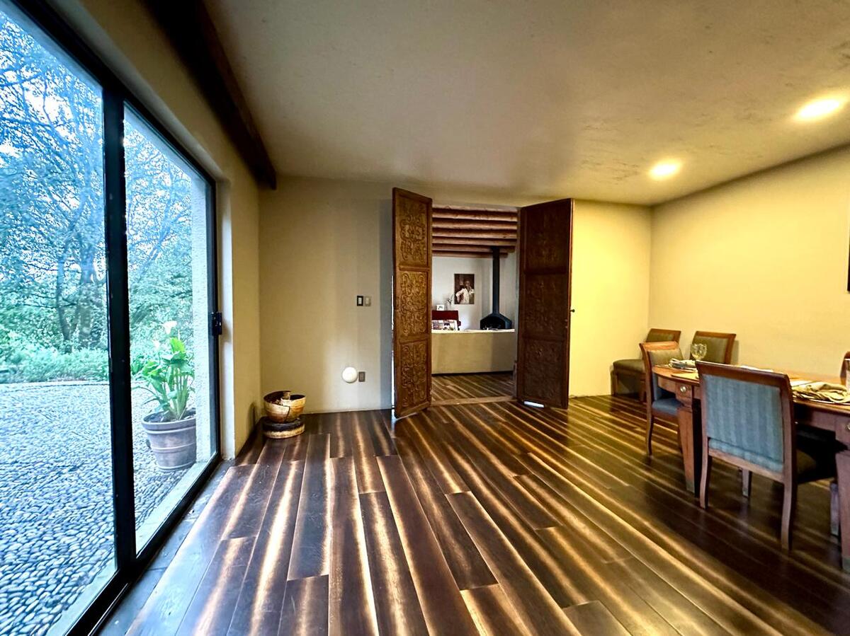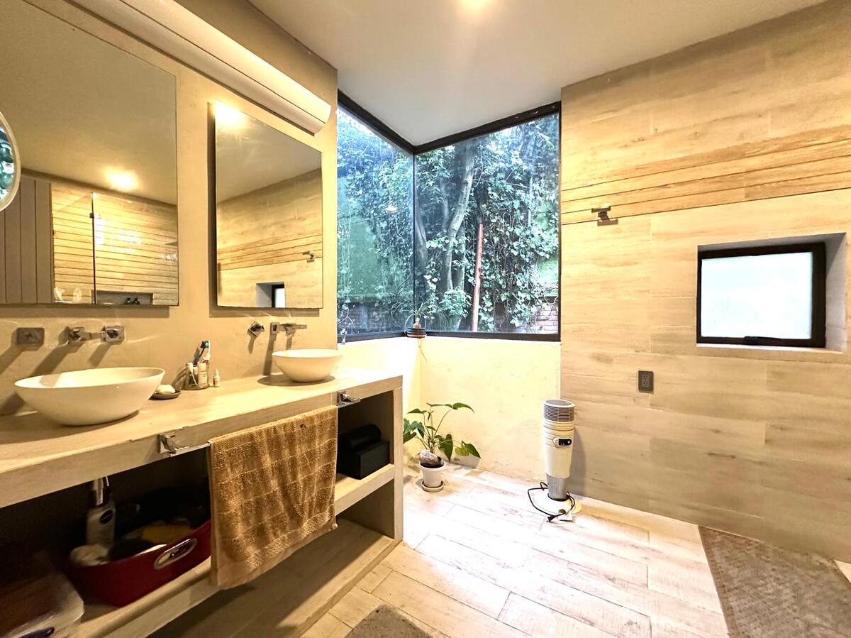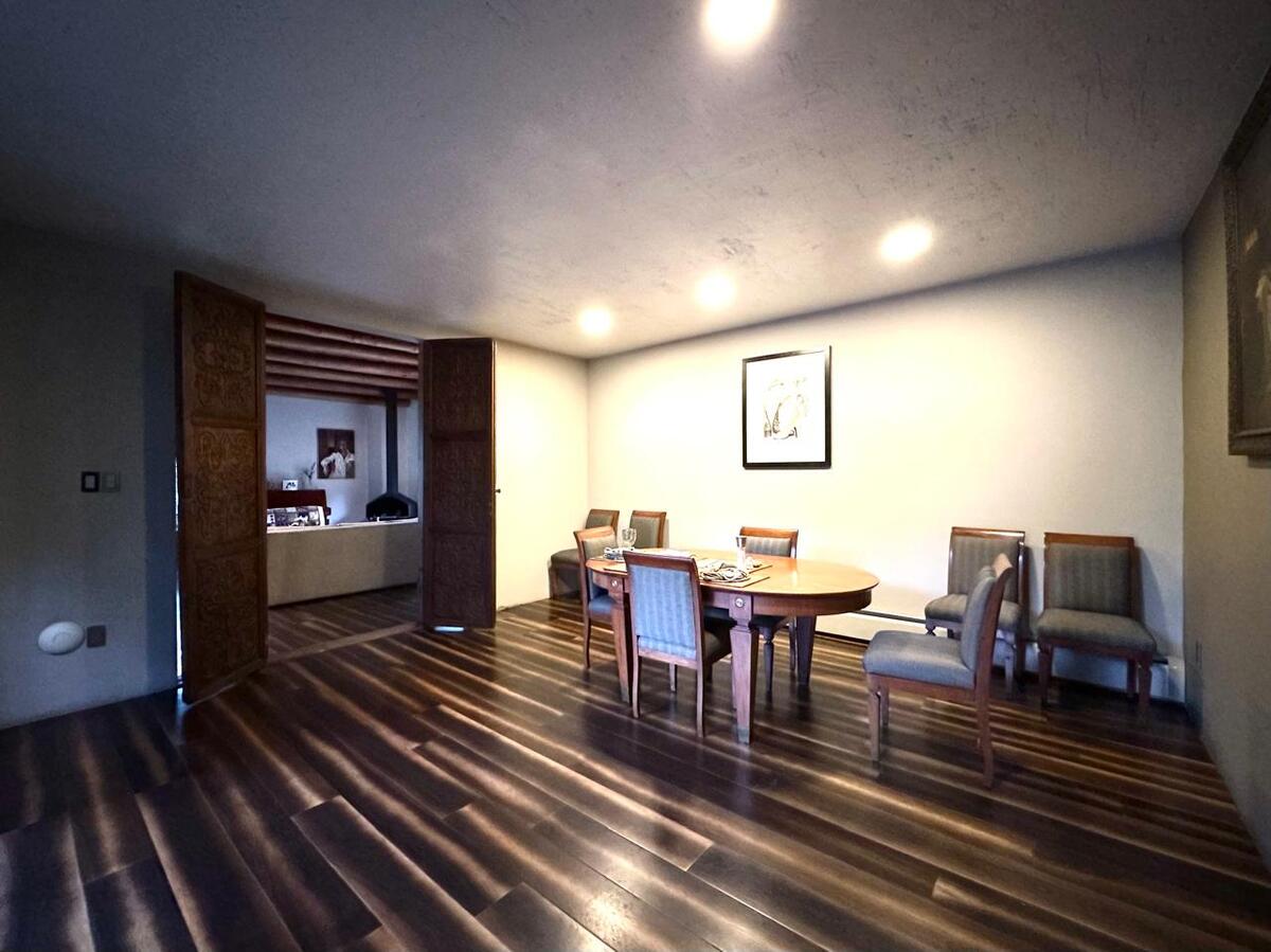 Son 4 recámaras (la principal con baño y salida a una terraza privada), 2 de las recámaras comparten baño, 3 baños completos, 2 baños de visitas, oficina/despacho con entrada independiente, family / sala de TV, cuarto de servicio con baño, área de lavado con cuarto de baño (puede ser 2do cuarto de servicio), salón de fiesta con baño, mesa de billar, terraza con asador y entrada independiente, 5 puestos de estacionamiento, jardín con vista al bosque. La propiedad cuenta también con sistema de paneles solares, cisterna con capacidad para 50 mil litros de agua, calefacción en toda la casa. Seguridad