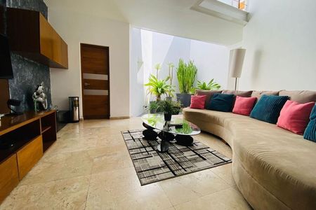 Dispone de cuatro recámaras, cada una diseñada para el máximo confort, y cuatro baños y medio, distribuidos estratégicamente para brindar privacidad y comodidad. Además, la casa incluye una terraza ideal para disfrutar de las vistas, una alberca perfecta para relajarse, un patio interior que aporta luz y ventilación natural, una bodega, un sótano y un jardín exuberante.