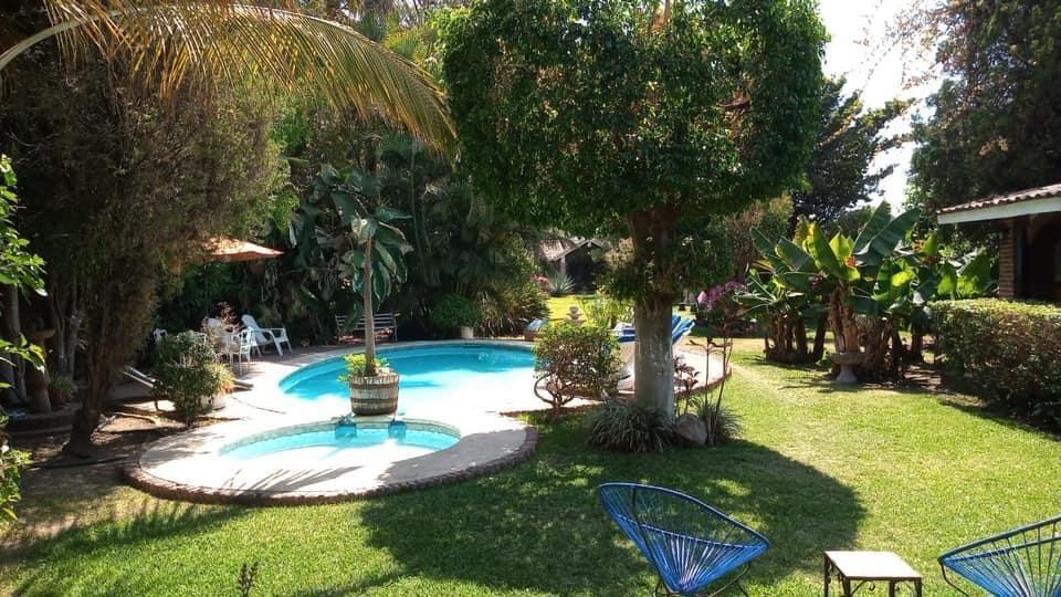 ❖ Casa principal con 3 recámaras con baño, cocina, área de TV, medio baño, terraza, sala con chimenea, comedor, bar, jacuzzi, alberca con caldera y jardín de 1000 m2