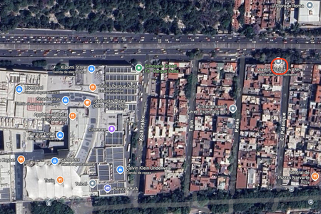 Está localizado a duas quadras do Mercado de Mixcoac e a meia quadra do Periférico; com importantes vias de acesso. Excelente área para um desenvolvimento habitacional.