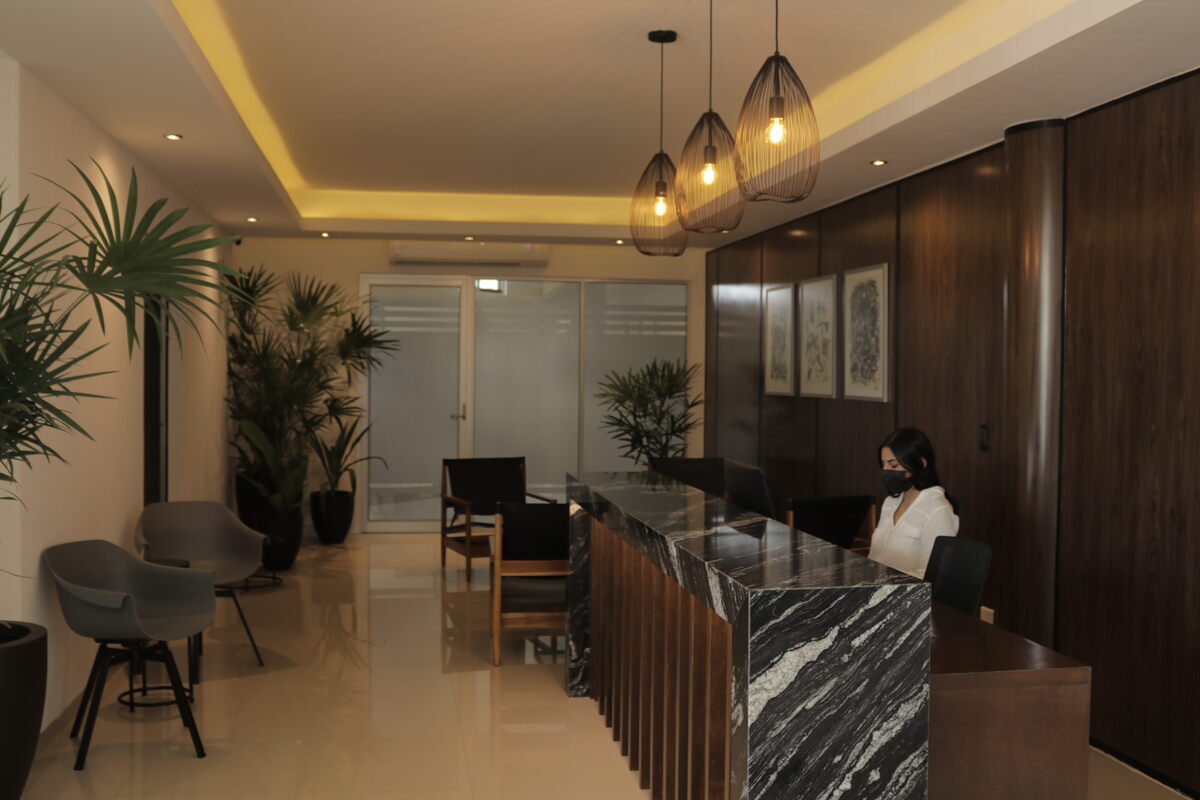 La oficina cuenta un amplio espacio de area de trabajo conjunto y 3 cubiculos privados, asi como las amenidades y areas comunes del edificio.