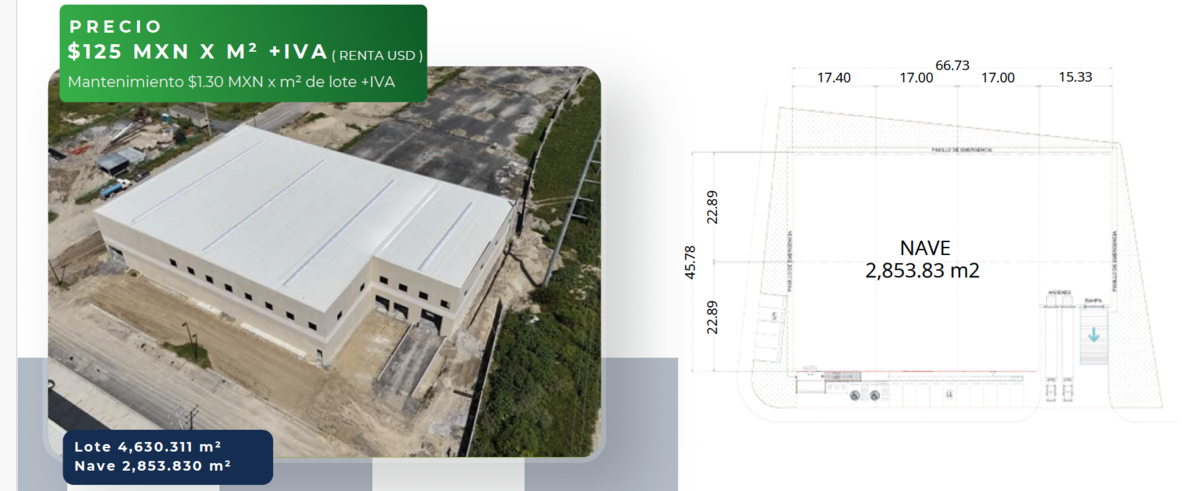 Superficie de la nave : 2,853.83 m² (lista para entregar )