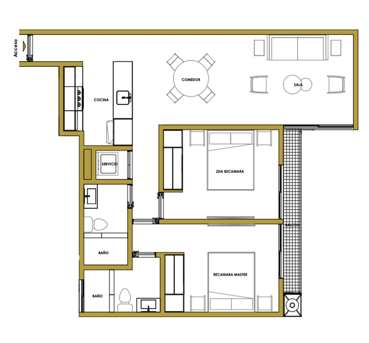 Balcón de 4 metros con acceso desde las recámaras y el área social