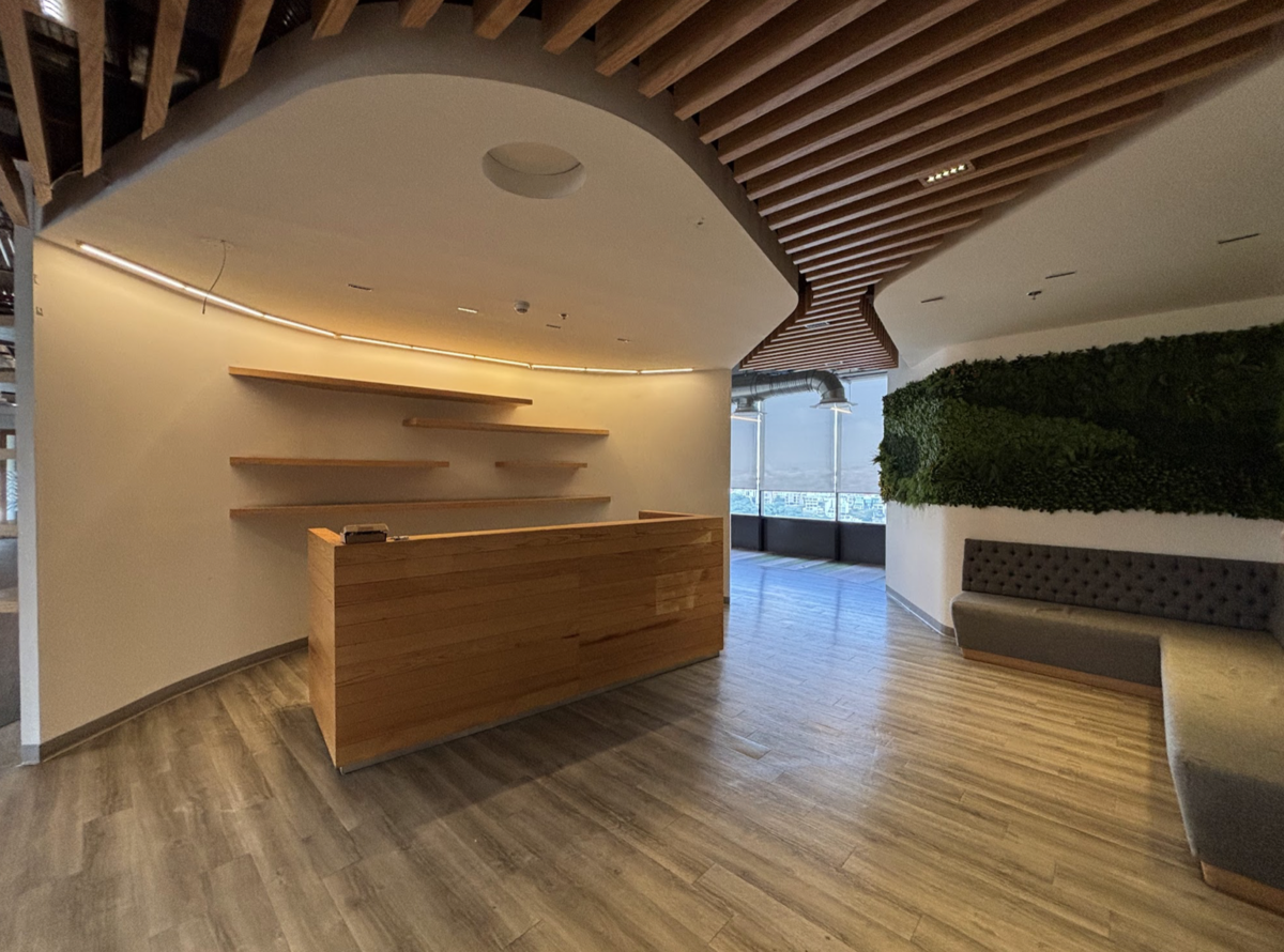 Acabados modernos y elegantes en cada espacio de la oficina.