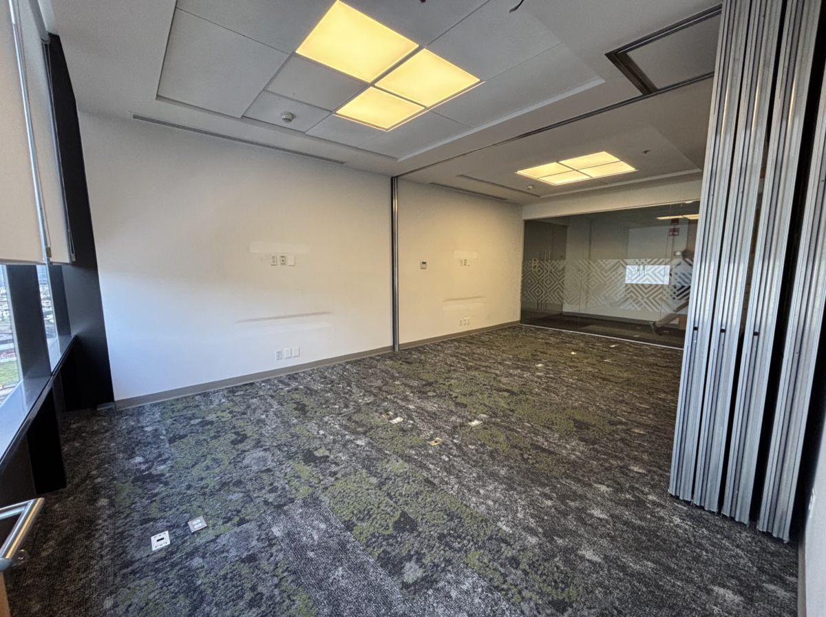 Sem mobília, mas totalmente equipada com carpetes, pisos, salas de reuniões, divisões, área de descanso e área para o site com prateleiras prontas para começar a operar.