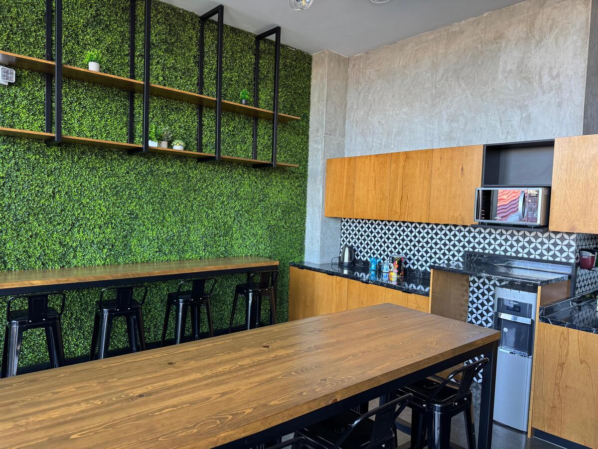 recepción, comerdor, casilleros (lockers), site de sistemas, aire acondicionado, sistema contra incendios, amplia terraza y cluster de sanitarios en el nivel. El edificio, además de ser nuevo y moderno, ofrece elevadores, áreas comunes,