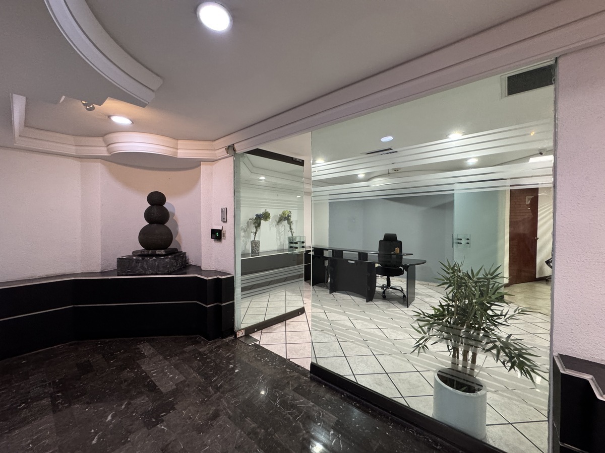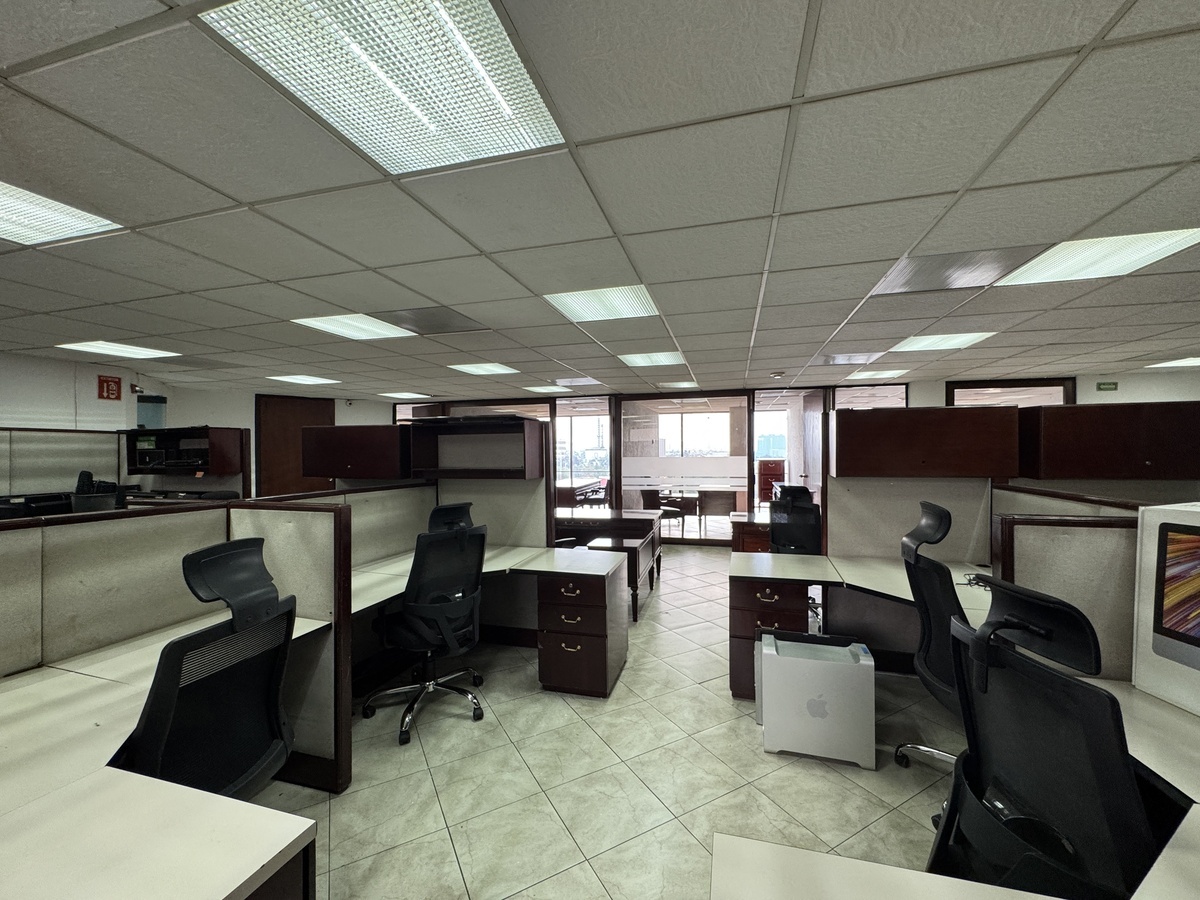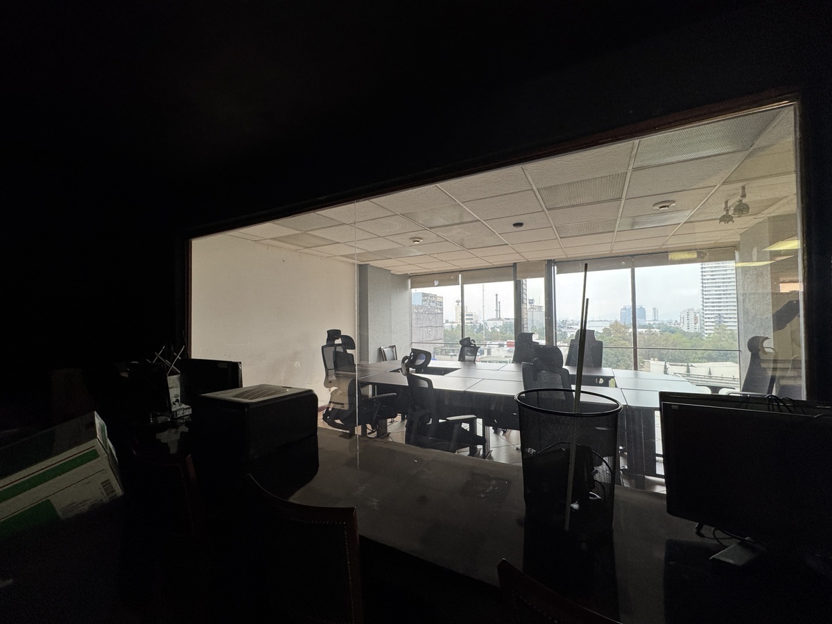 Escritório para Aluguel em Polanco V, Ejercito Nacional 404, 7º andar. Possui 300 metros quadrados de construção, câmera Gesell, escritório principal com banheiro, 6 cubículos, 21 estações de trabalho, cozinha, ar condicionado, instalação elétrica trifásica, saída de emergência e 2 vagas de estacionamento. O edifício conta com segurança 24/7, circuito fechado de televisão e acesso controlado, bem como certificado DRO atualizado. Pode ser alugado com ou sem móveis.