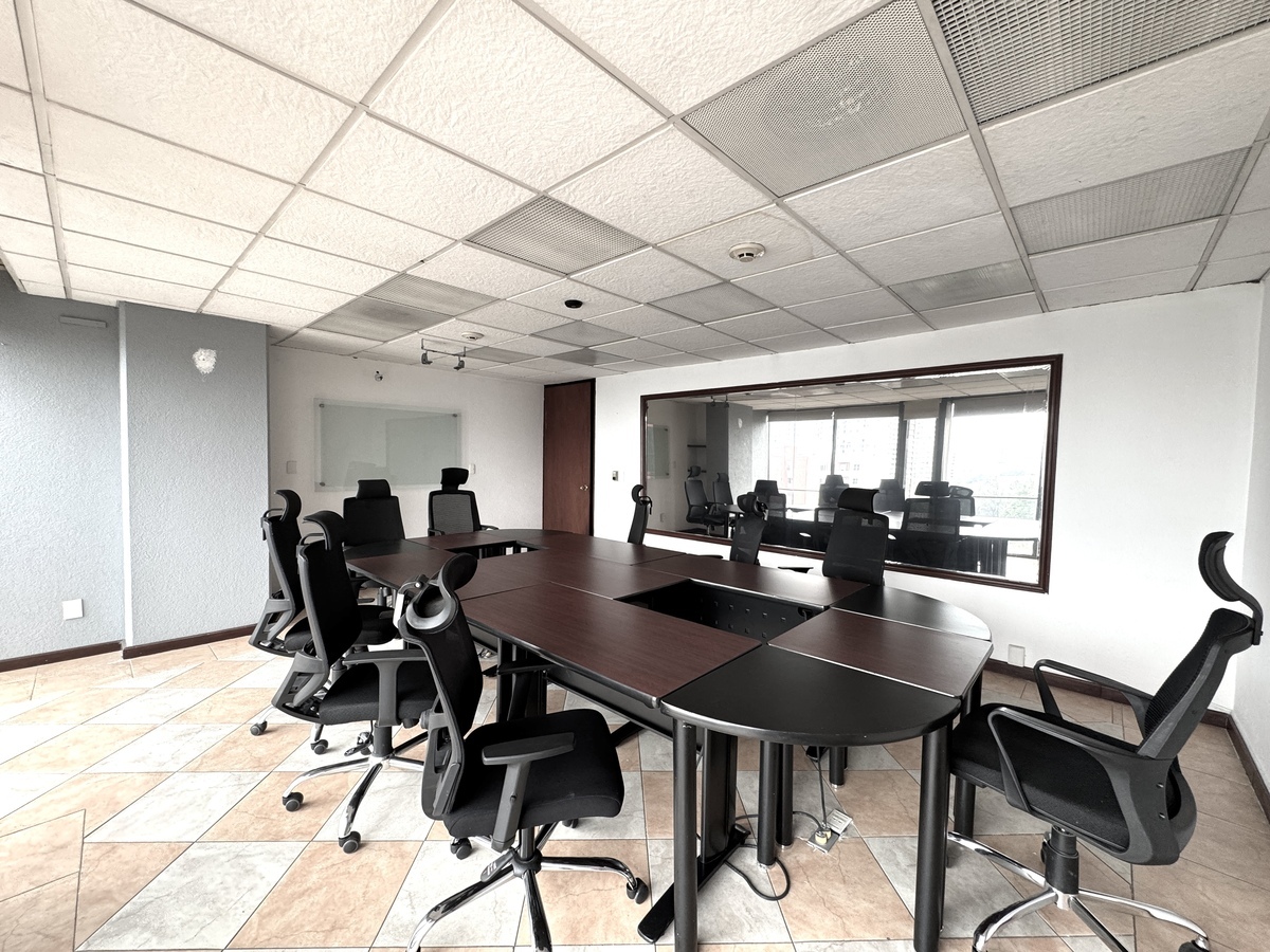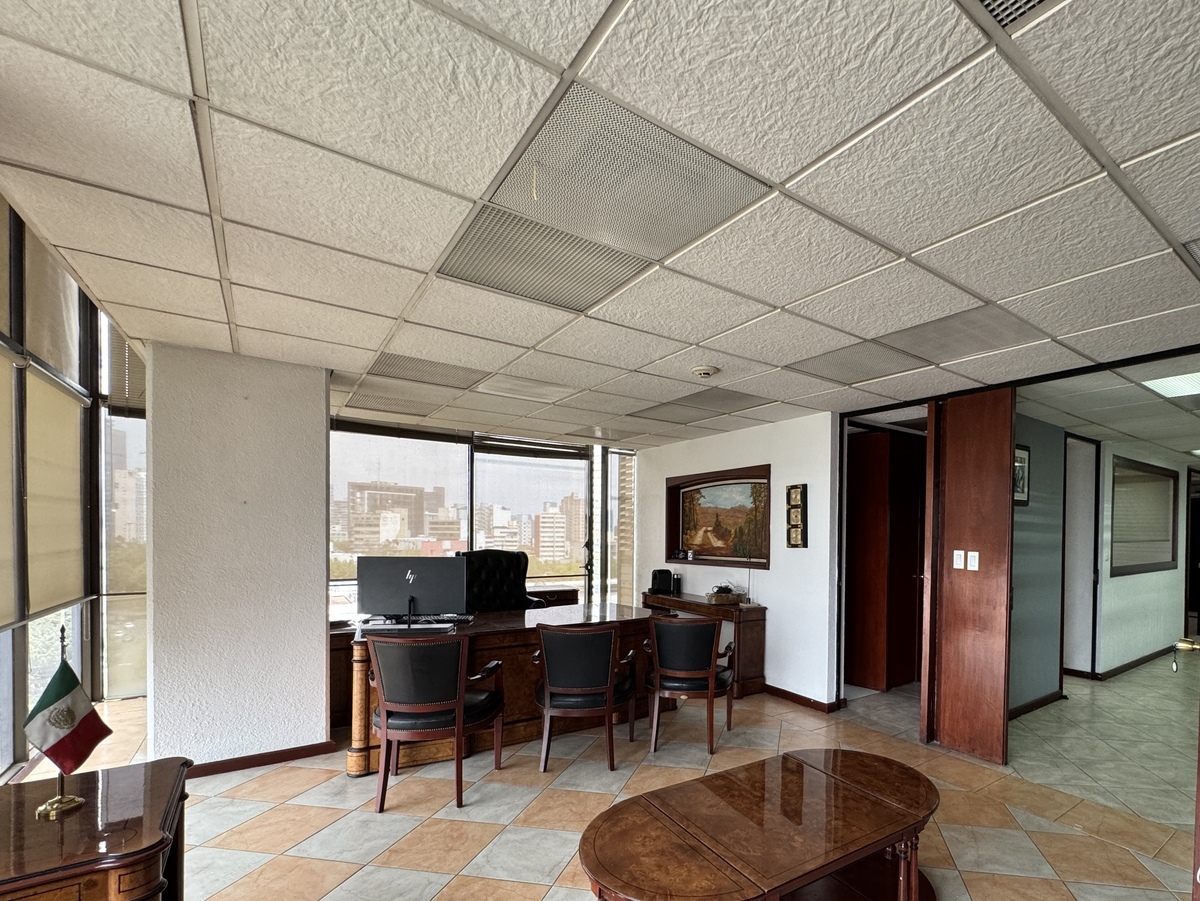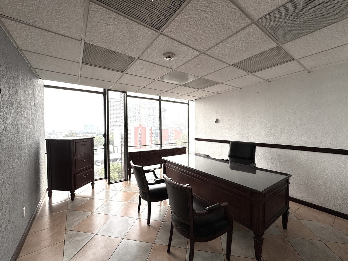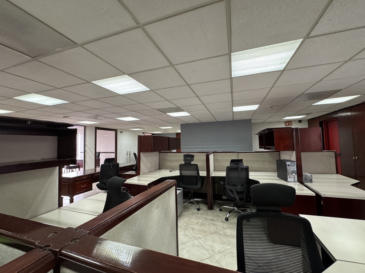 Escritório para Aluguel em Polanco V, Ejercito Nacional 404, 7º andar. Possui 300 metros quadrados de construção, câmera Gesell, escritório principal com banheiro, 6 cubículos, 21 estações de trabalho, cozinha, ar condicionado, instalação elétrica trifásica, saída de emergência e 2 vagas de estacionamento. O edifício conta com segurança 24/7, circuito fechado de televisão e acesso controlado, bem como certificado DRO atualizado. Pode ser alugado com ou sem móveis.