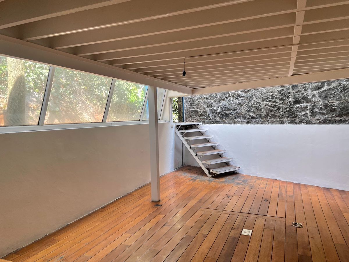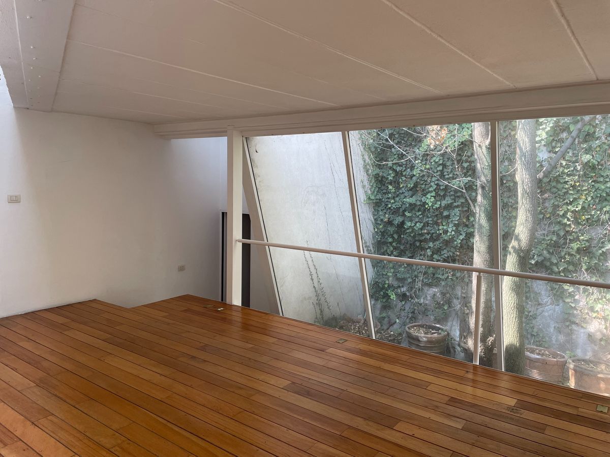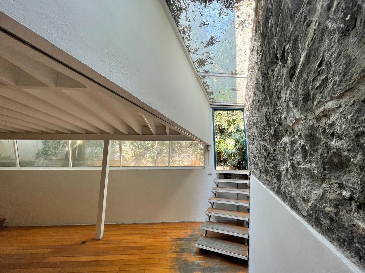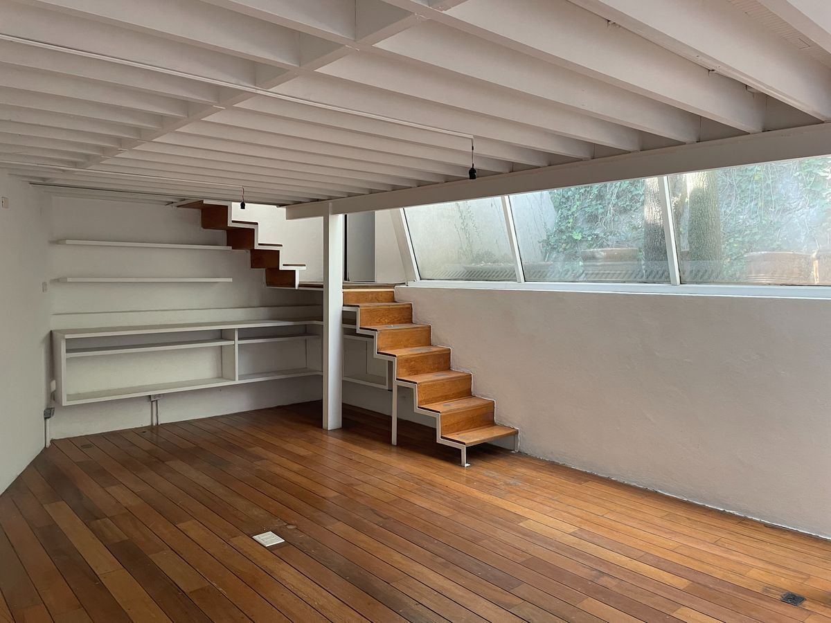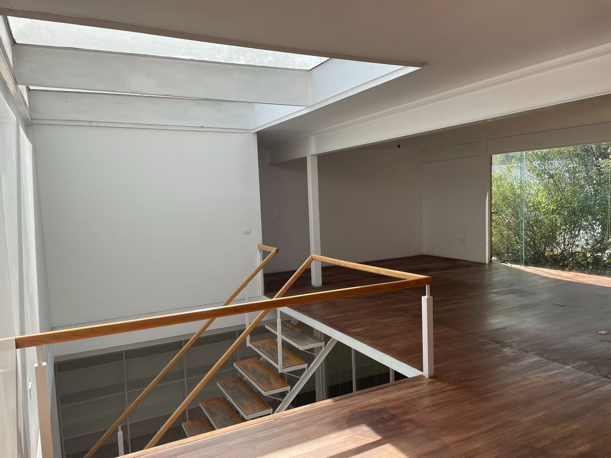 1er piso: escalera con tragaluz . Área de trabajo con vista al jardín. Un espacio alargado para un privado. baño completo. Área de trabajo con ventanas a fachada a la calle con un patio interior. Del otro lado del jardín al fondo con muro de piedra y ventana lateral hay mas espacio de trabajo en 2 niveles con un baño. Lugar para 2 autos. Precio sujeto a cambio y disponibilidad