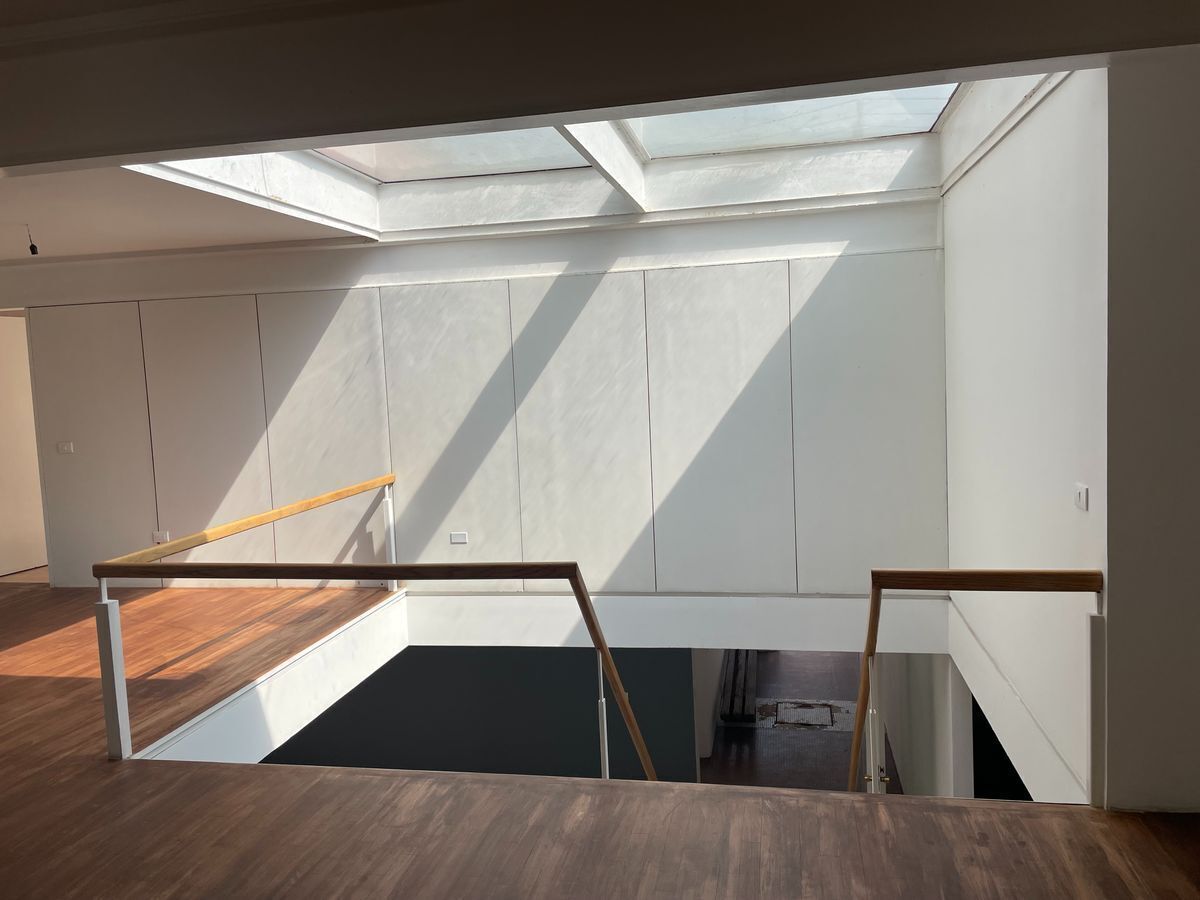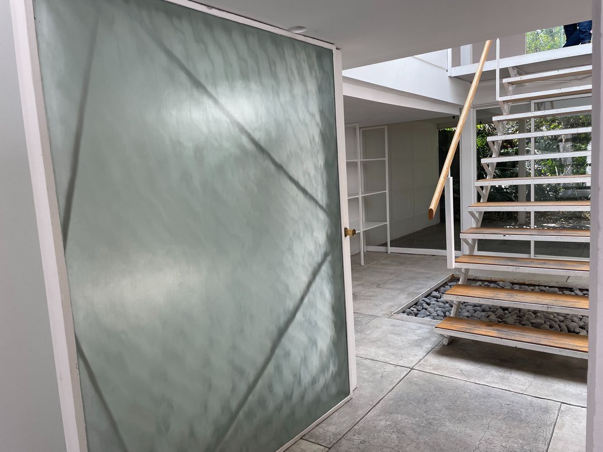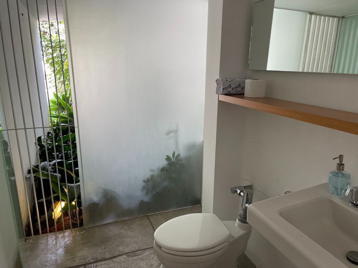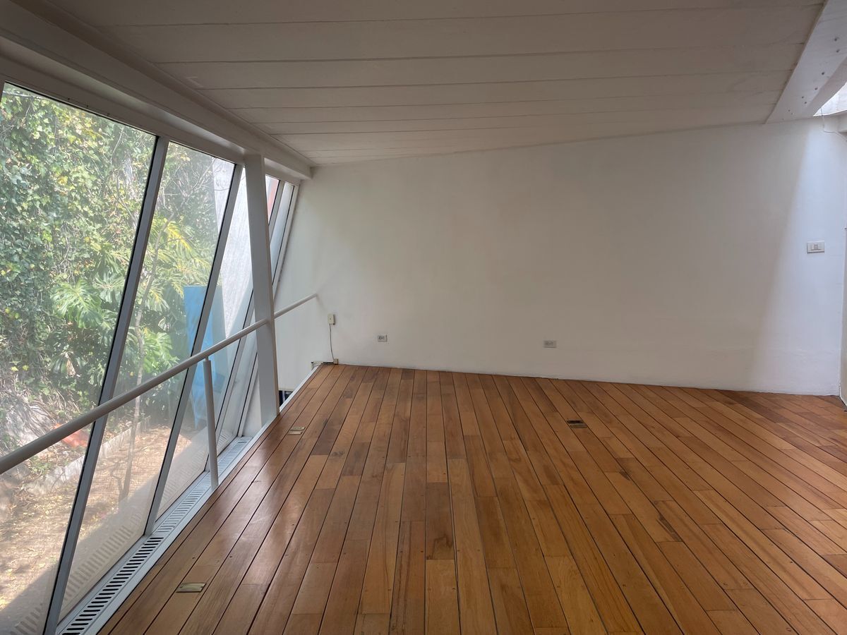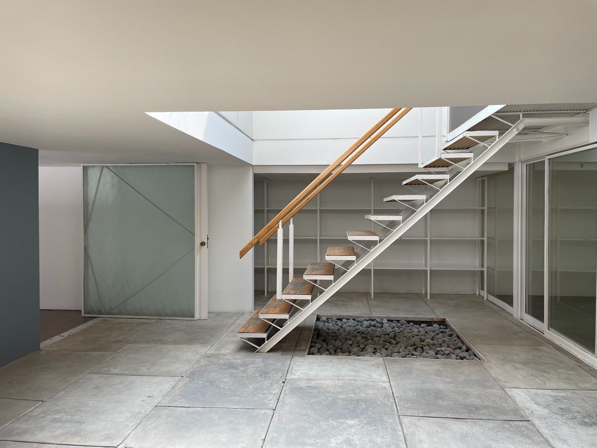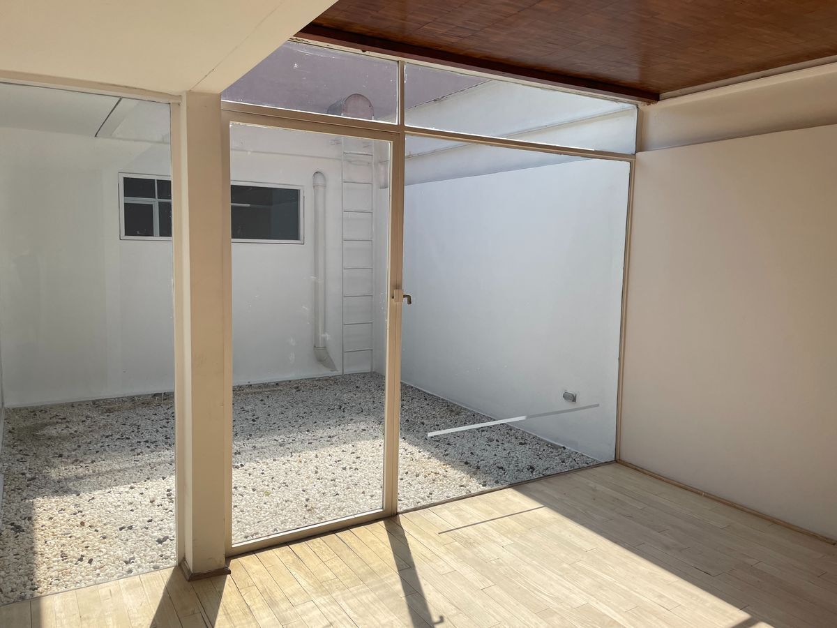 1er piso: escalera con tragaluz . Área de trabajo con vista al jardín. Un espacio alargado para un privado. baño completo. Área de trabajo con ventanas a fachada a la calle con un patio interior. Del otro lado del jardín al fondo con muro de piedra y ventana lateral hay mas espacio de trabajo en 2 niveles con un baño. Lugar para 2 autos. Precio sujeto a cambio y disponibilidad