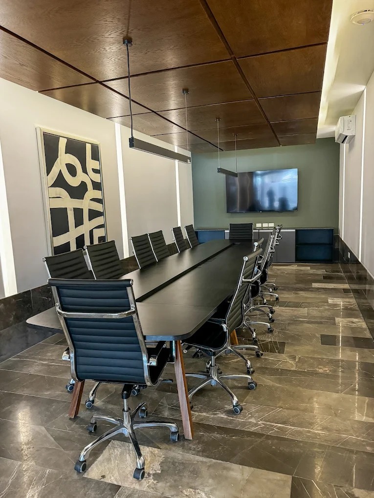 -Sala de Juntas con mesa redonda para 6 personas equipada.