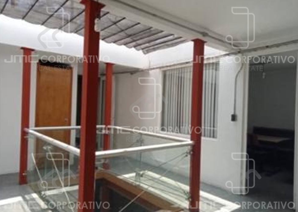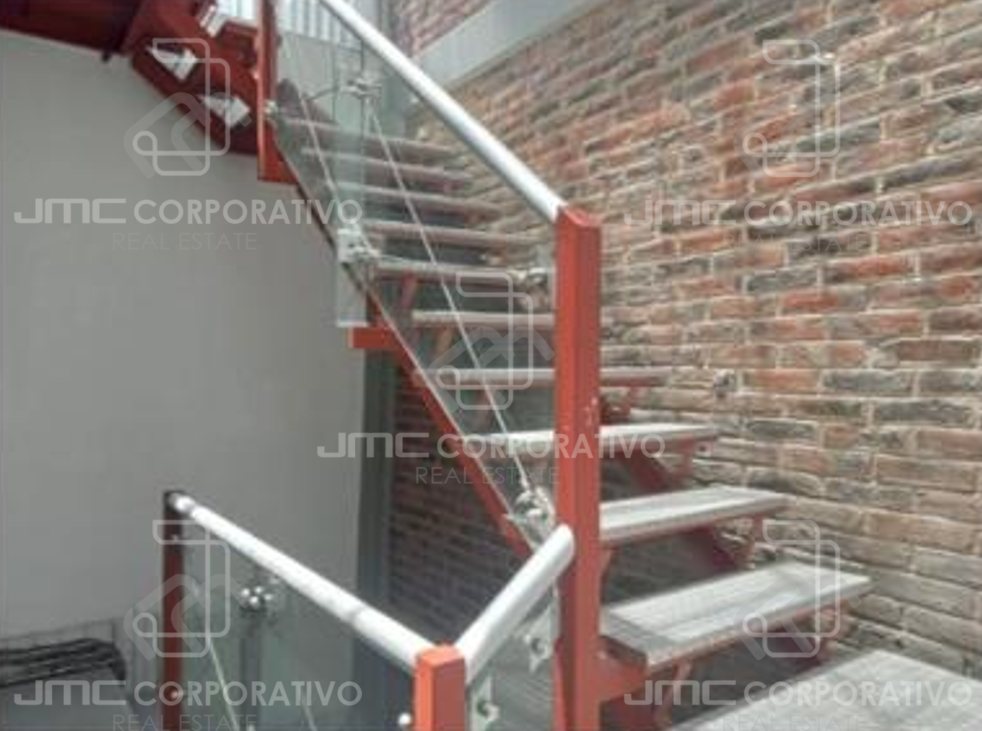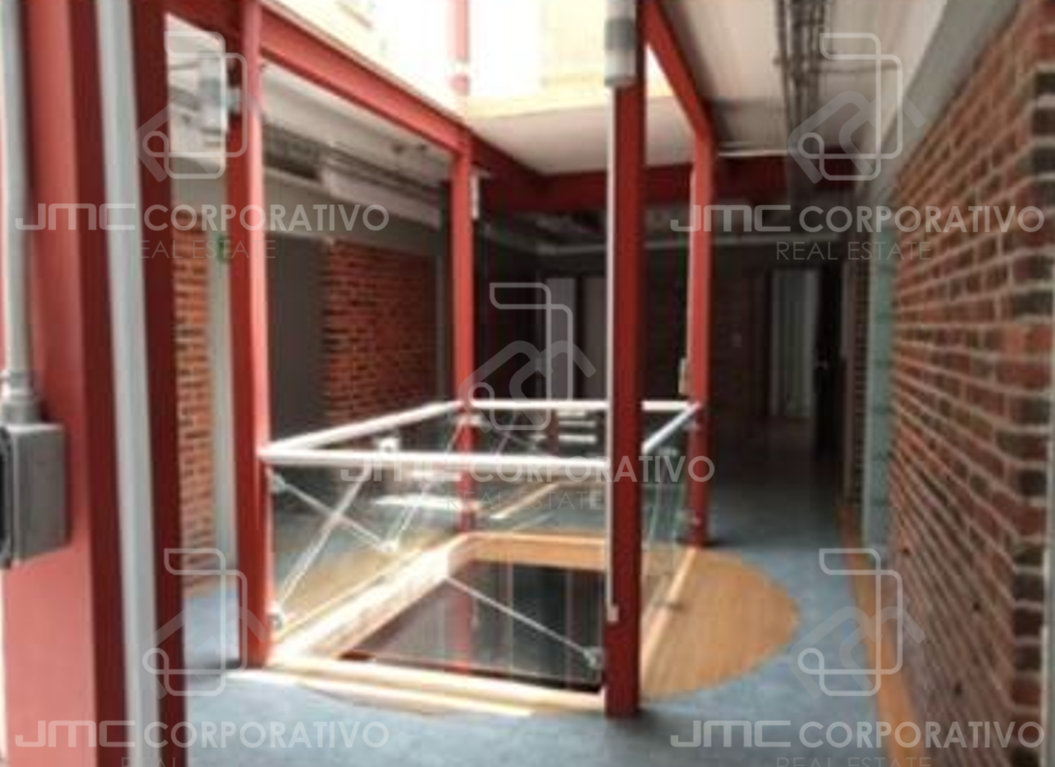 Acabados de calidad: piso de madera y loseta, puertas de vidrio en cada oficina, domos de vidrio, techos de doble altura, muros de ladrillo aparente y escalera de acero inoxidable con recubrimiento antiderrapante.