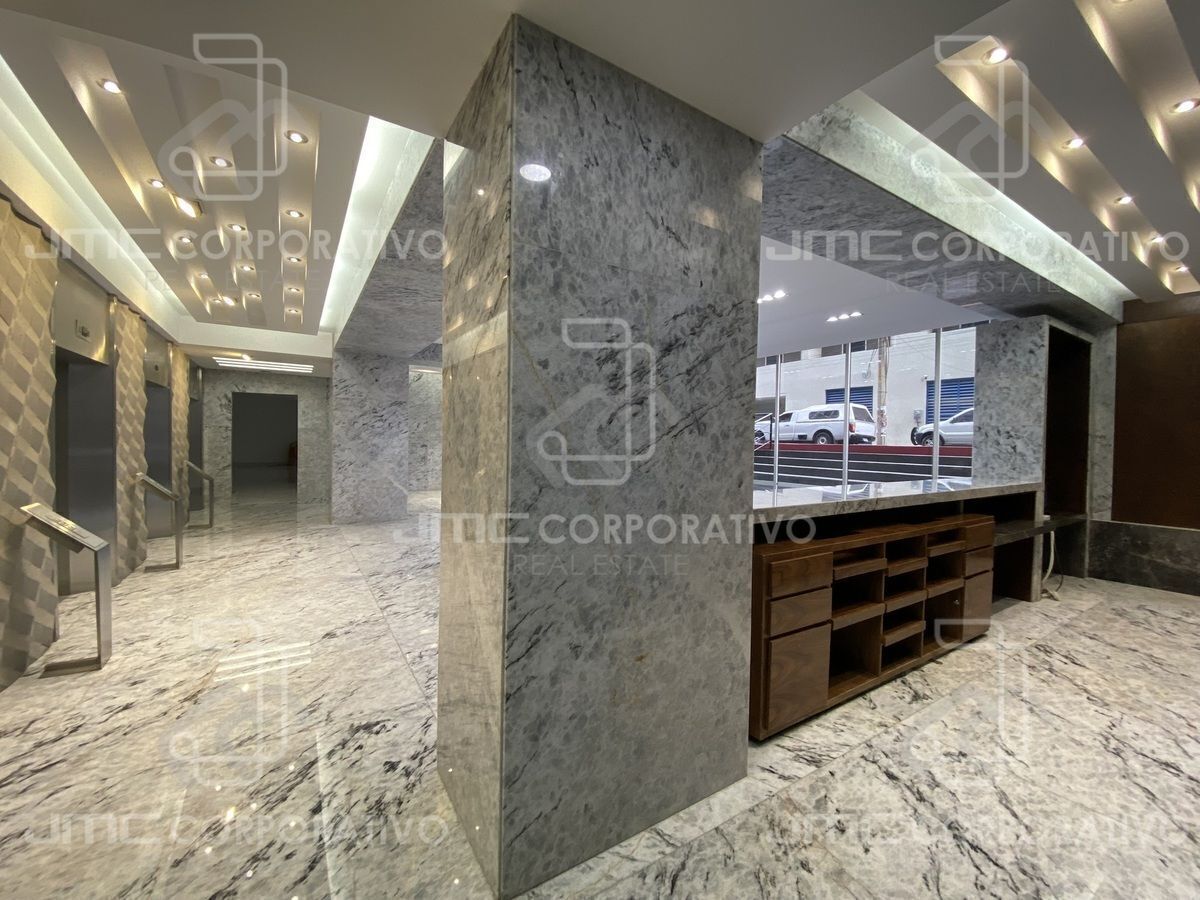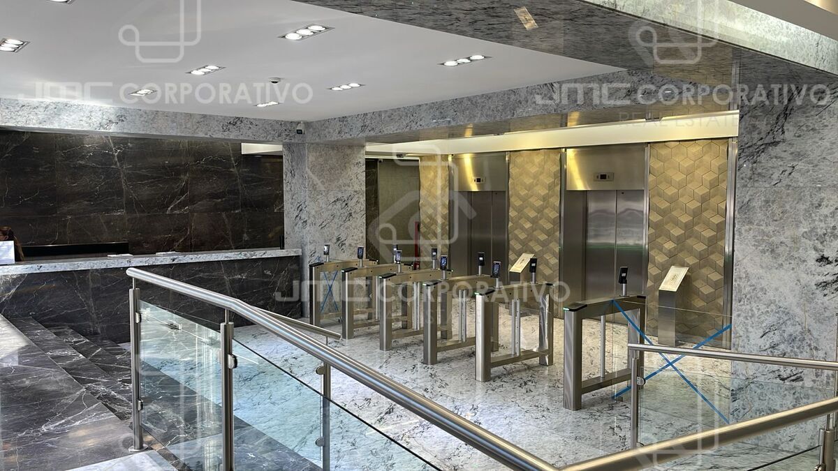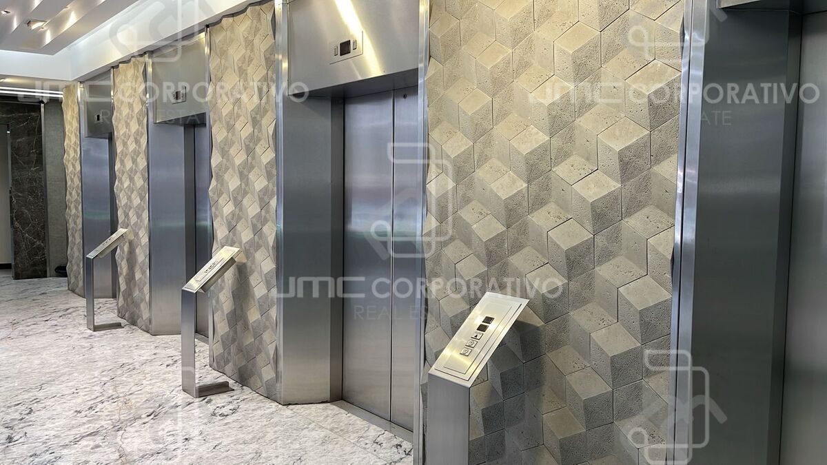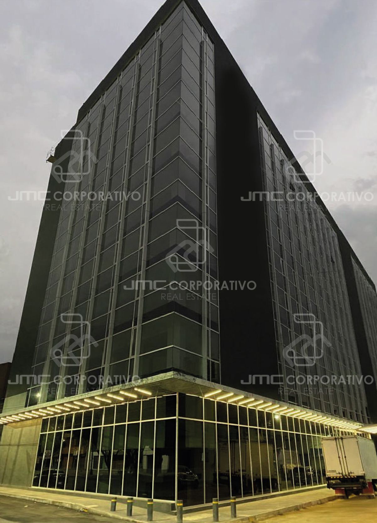 El edificio cuenta con 10 pisos, torniquetes con biométricos, penthouse, roof garden/cafetería como área común, estacionamiento para 225 unidades, dos montacargas y cuatro elevadores.