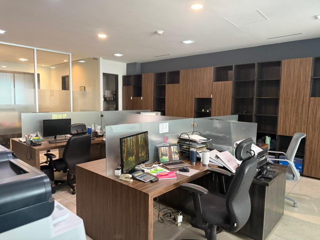*La oficina no está amueblada, los muebles que incluye son: el escritorio y el archivero de la entrada a las oficinas y en la segunda oficina cubículos y el archivero grande que está sobre una de las paredes.