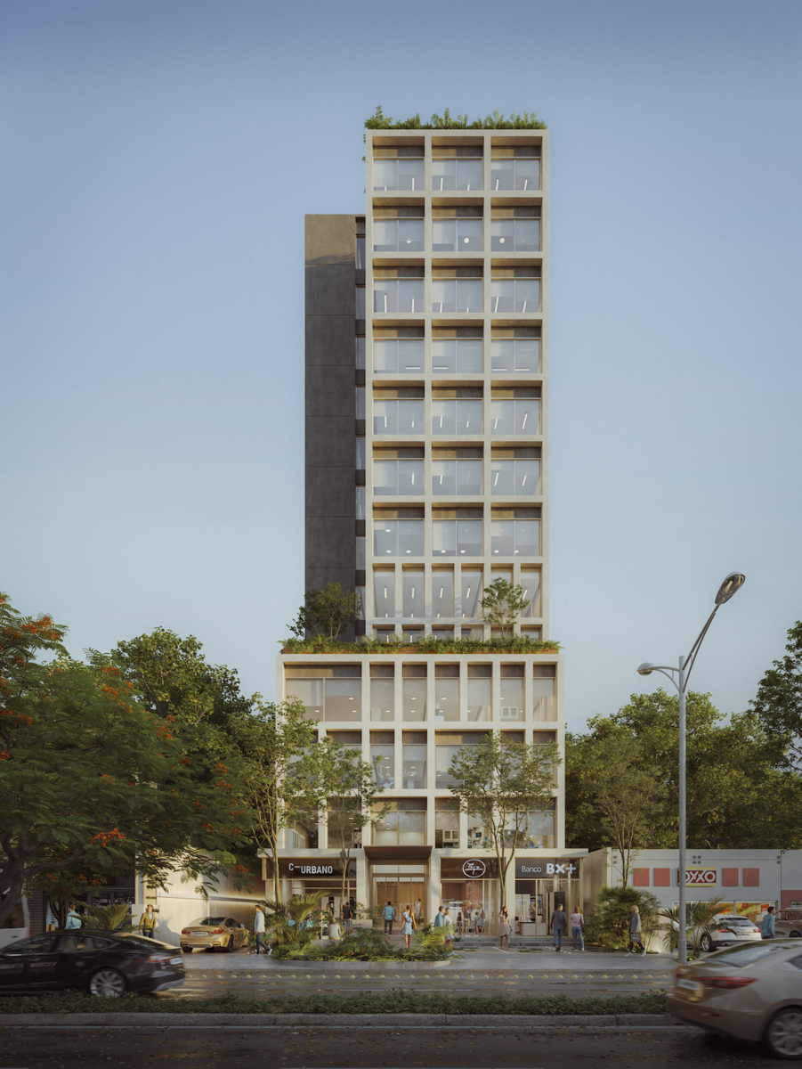 Montejo Vertical es un edificio de usos mixtos de 13 niveles sobre Prolongación Paseo de Montejo, en Mérida.