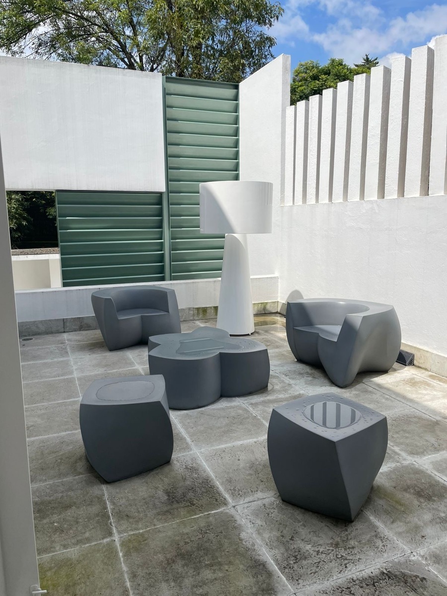 Capacidad para 10 cajones de estacionamiento. Iluminación de escenas, fuentes modernas, circuito cerrado, circuito de audio, jardinería, cuarto de equipos de red y computo con ac y caseta de vigilancia 24hrs.