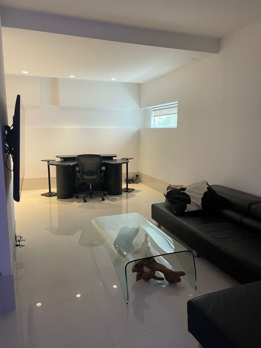 - En la planta baja hay una amplia oficina que puede ser subdividida. Tiene un salón con techo a triple altura que puede ser para eventos o para presentaciones, este también tiene baños para hombres y para mujeres.