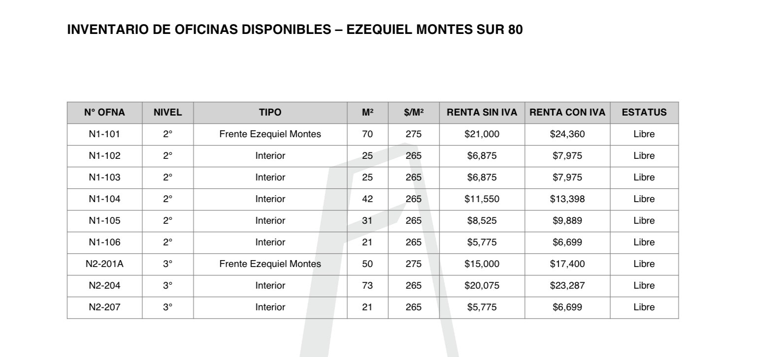 Preços mais IVA. Disponibilidade e valores sujeitos a alteração sem aviso prévio.Edificio de oficinas en renta ubicado sobre Ezequiel Montes Sur 80, en pleno Centro de Querétaro,