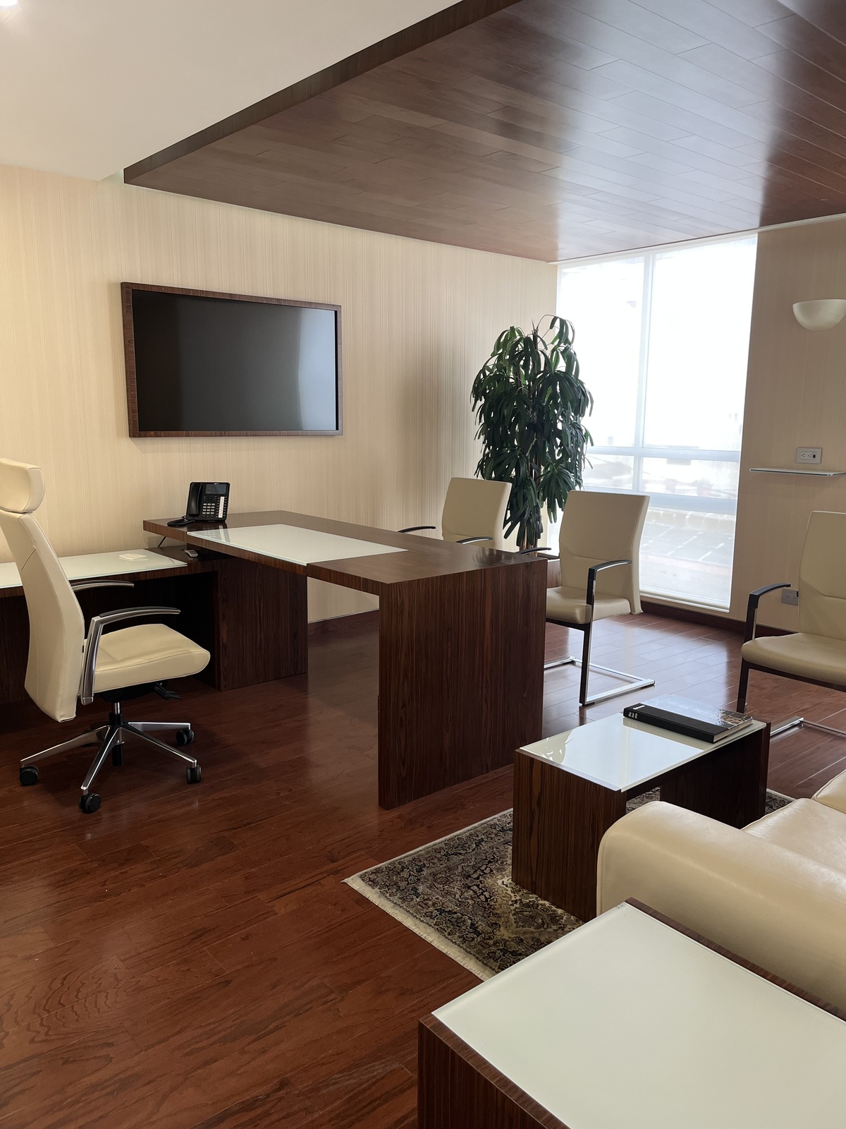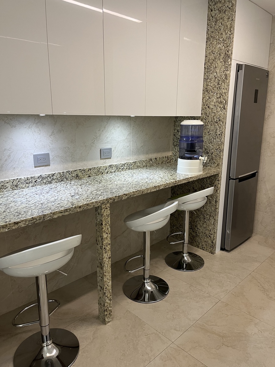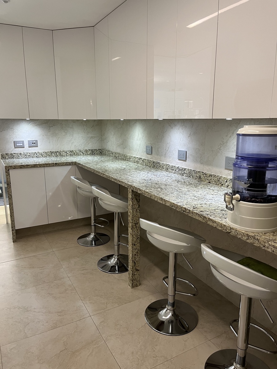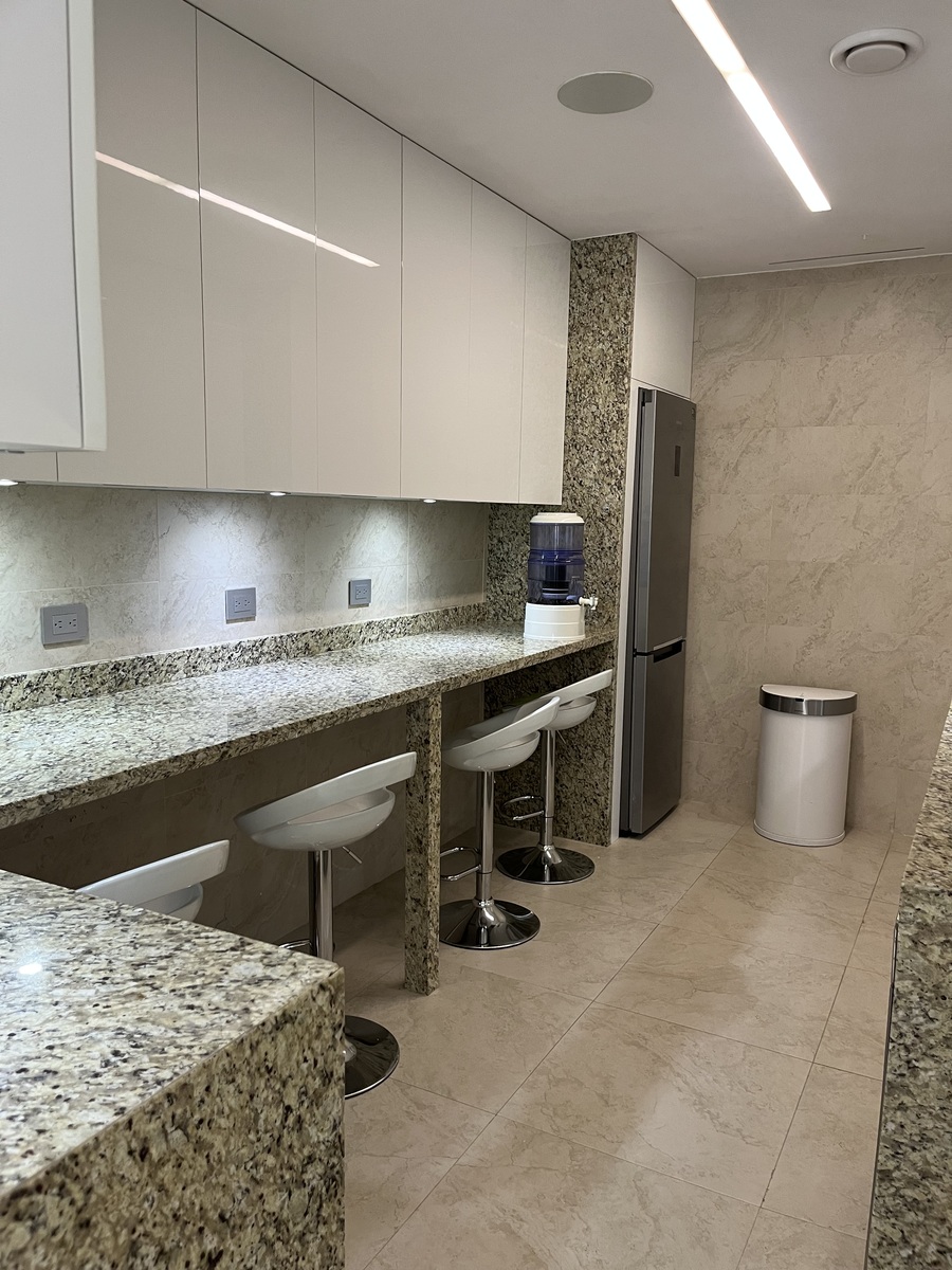 Consiste em 4 escritórios equipados com luz natural e ventilação, uma sala de reuniões para 10 ou 12 pessoas, um escritório privado para o gerente e um escritório de direção geral, banheiro completo com dois acessos, área grande equipada para 10 estações de trabalho, cada uma com telefone e duas copiadoras. Conta com área de recepção e sala, cozinha integral totalmente equipada, 4 vagas de estacionamento privadas e serviço de manobrista. O acesso ao edifício conta com recepção e controle de segurança, elevador e vigilância 24 horas.